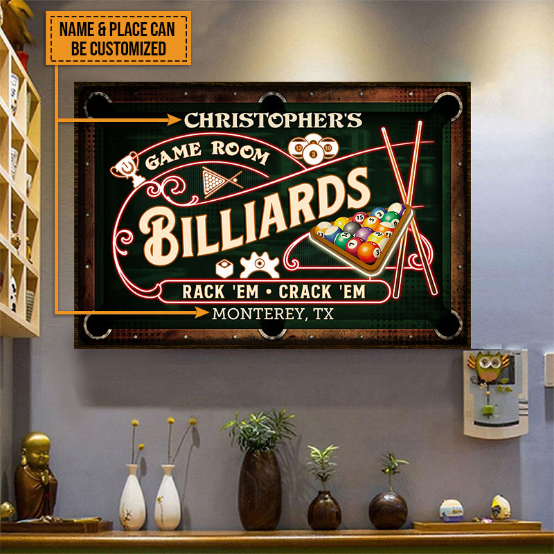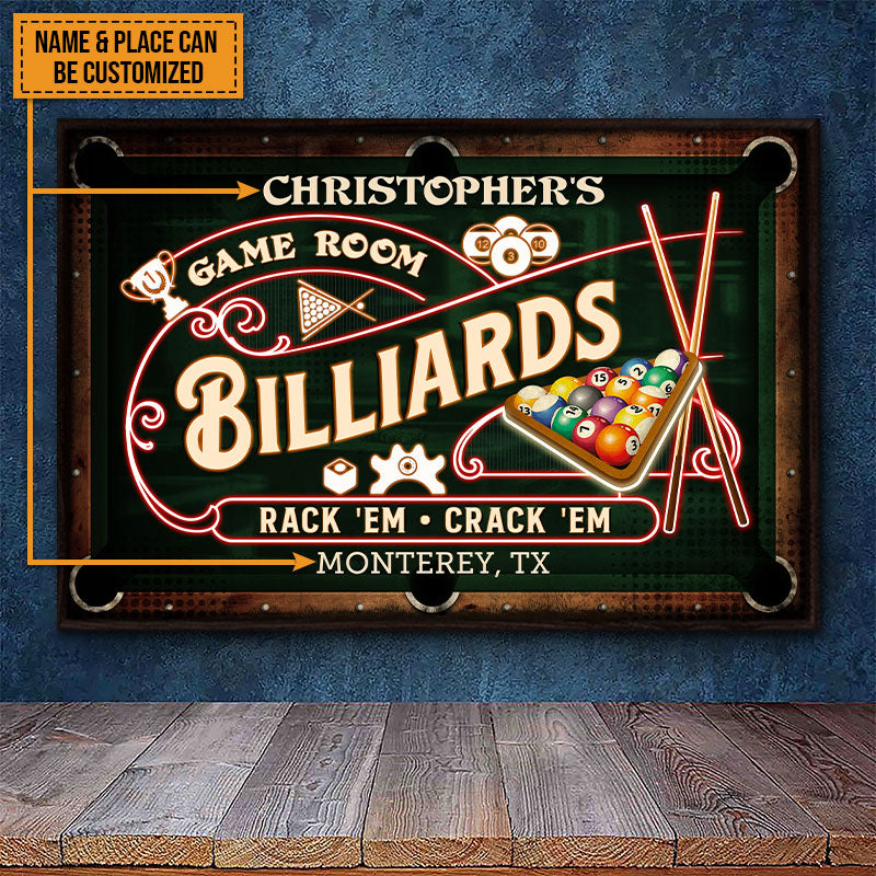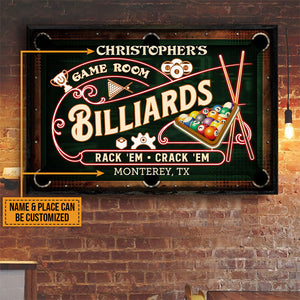 Personalized Billiards Game Room Neon Custom Poster
