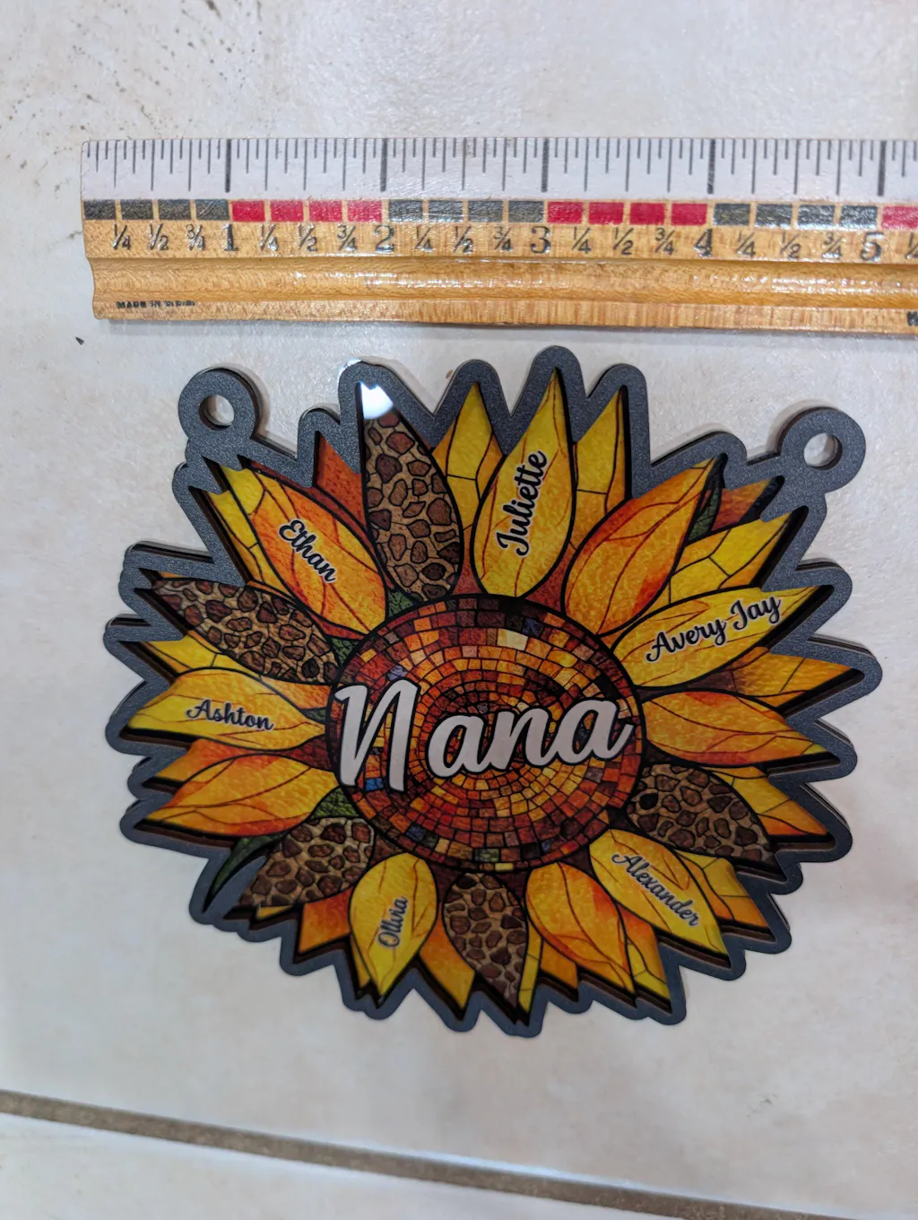 Brighten the lives of the special women in your family with the Nana Auntie Mom Family Sunflower Personalized Window Hanging Suncatcher Ornament. This awesome and delightful suncatcher is the perfect gift for mothers, aunts, wifes, and grandmas, bringing a touch of joy and beauty to any space.