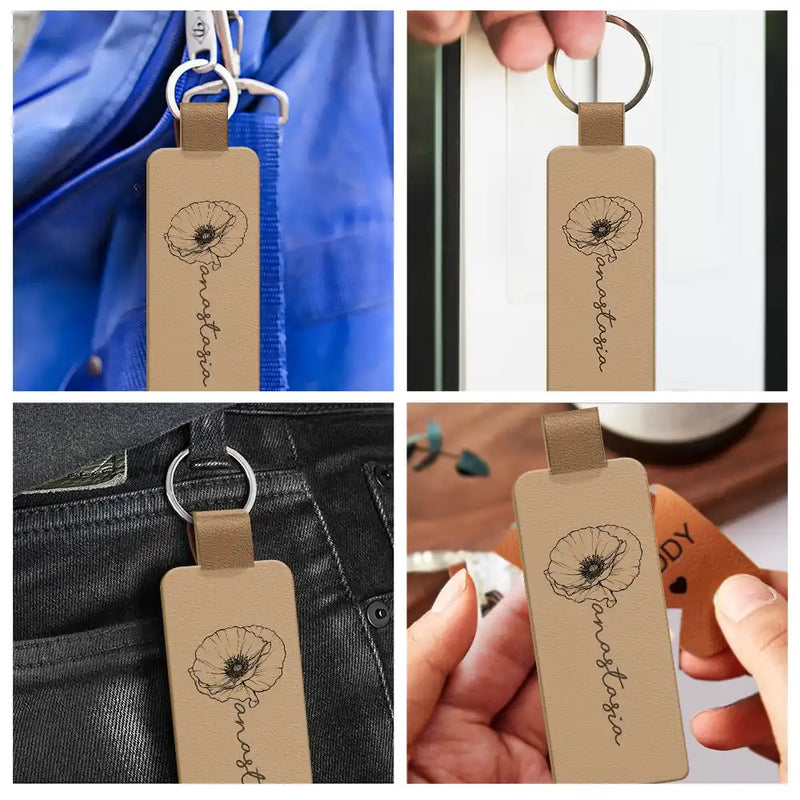 Birth Month Flowers Sketch Bloom Where You're Planted - Personalized Custom Shaped Leather Keychain