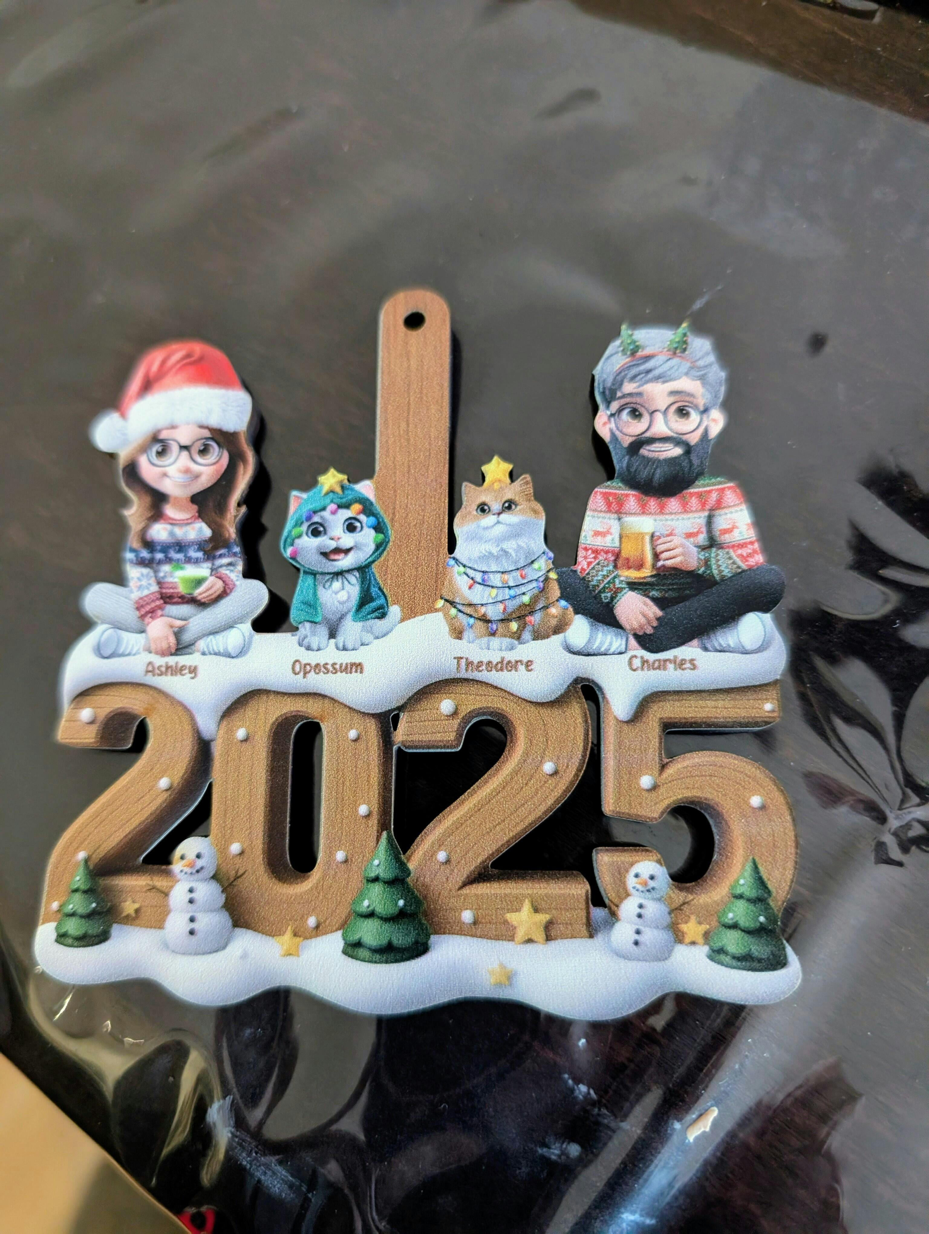 3D Effect Christmas Family And Dog Cat - Personalized Custom Shaped Wooden Ornament