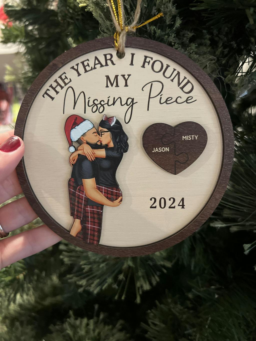The Year I Found My Missing Piece Kissing Couples - Personalized 2-Layered Wooden Ornament