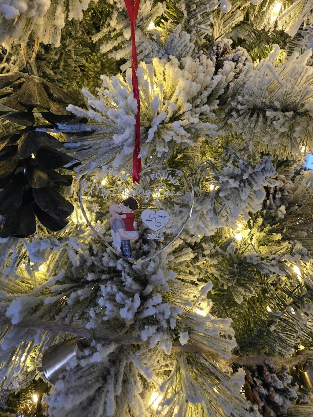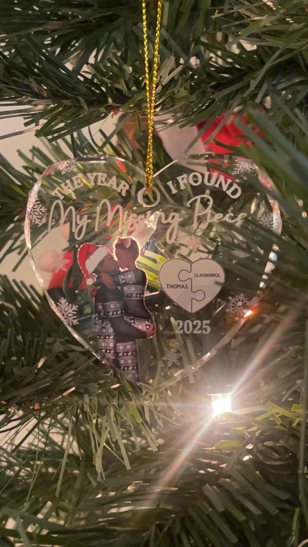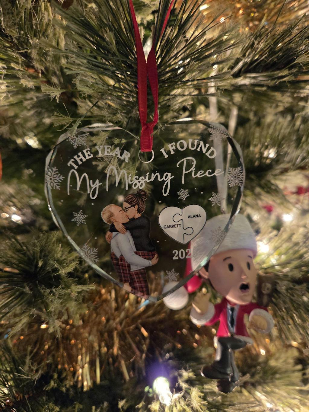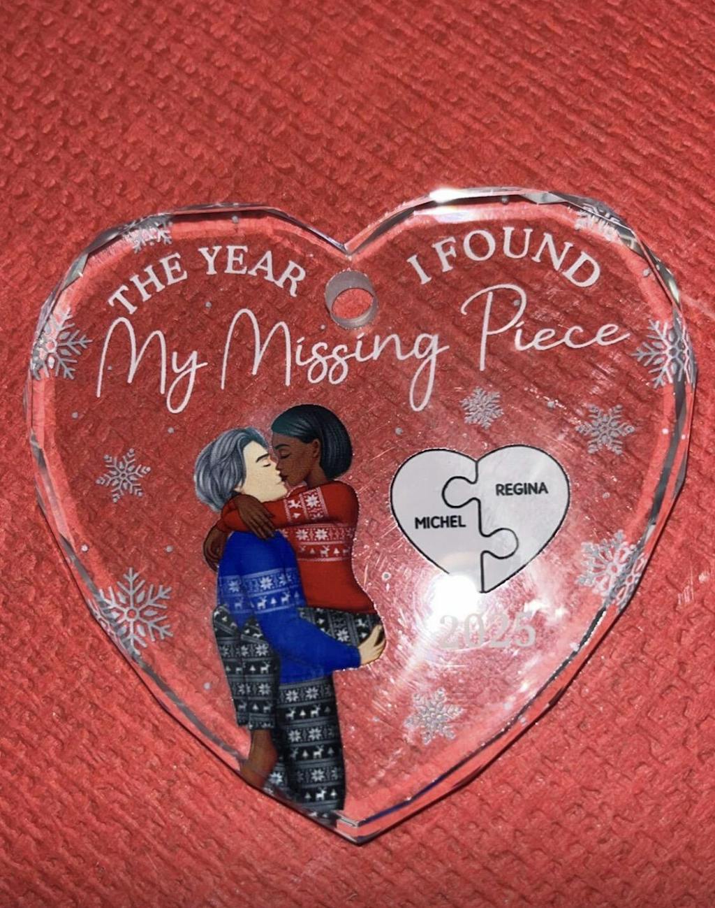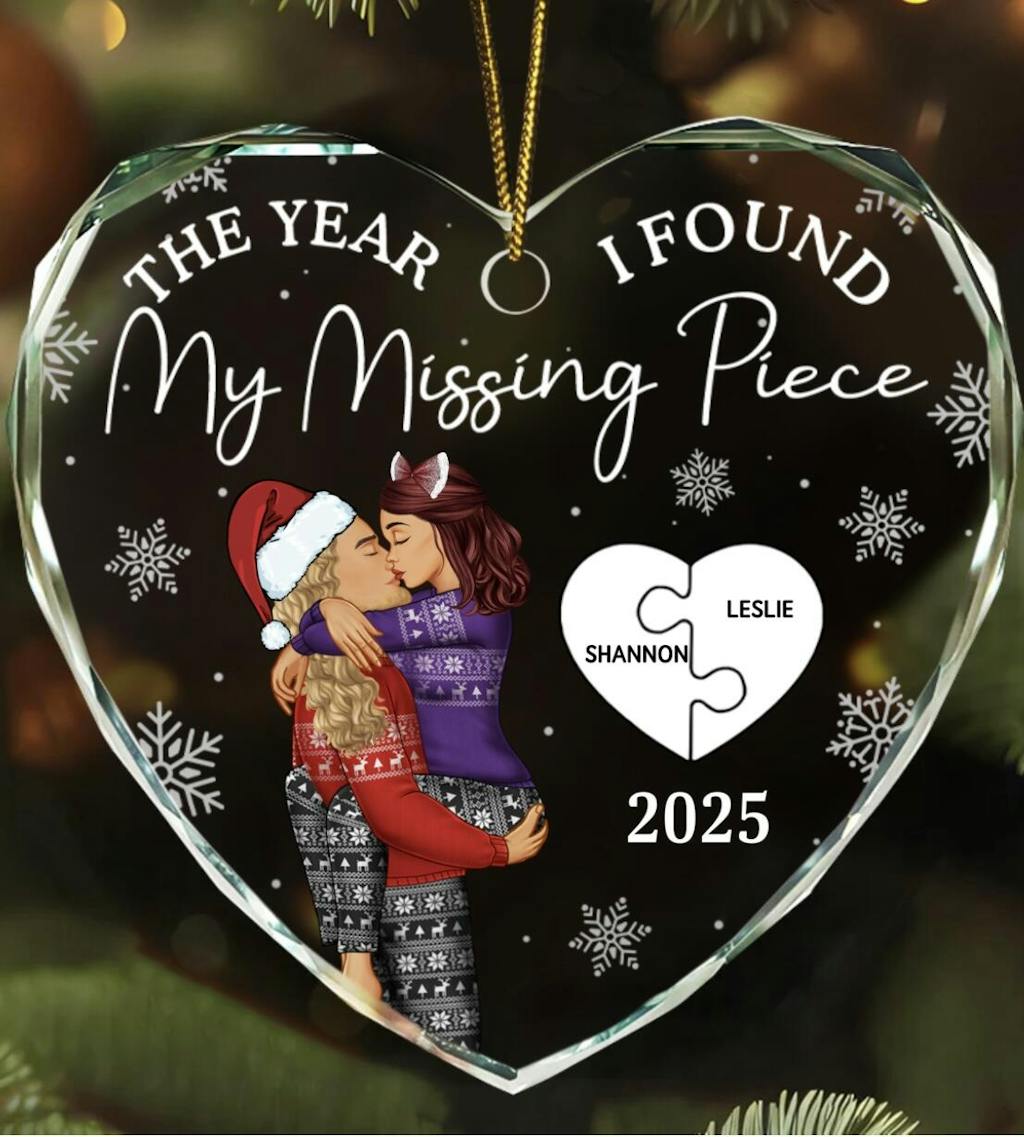 The Year I Found My Missing Piece Kissing Couples - Personalized Heart Shaped Glass Ornament