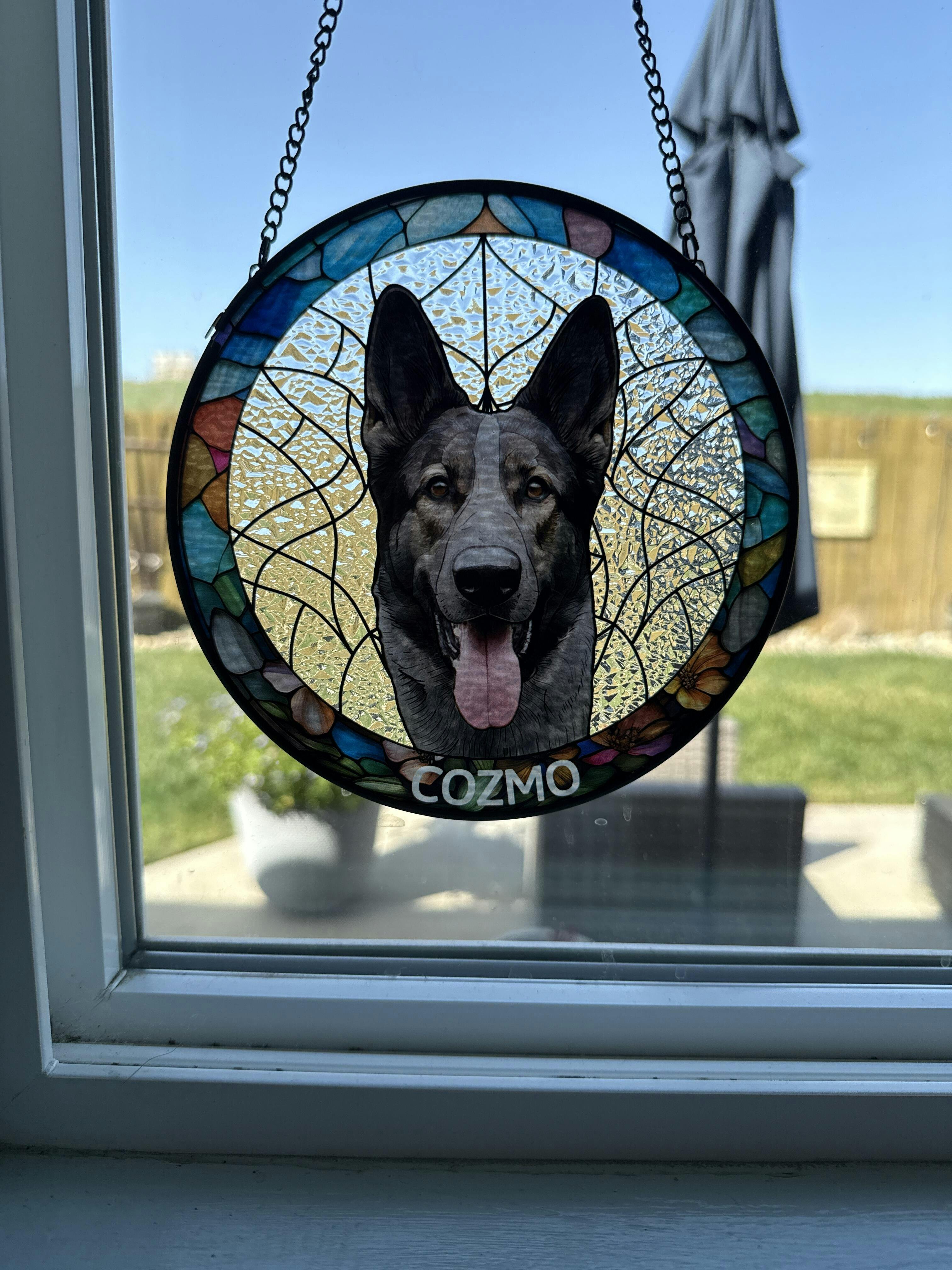 Custom Photo Portrait Dog Cat Family - Personalized Stained Glass Window Hanging Suncatcher