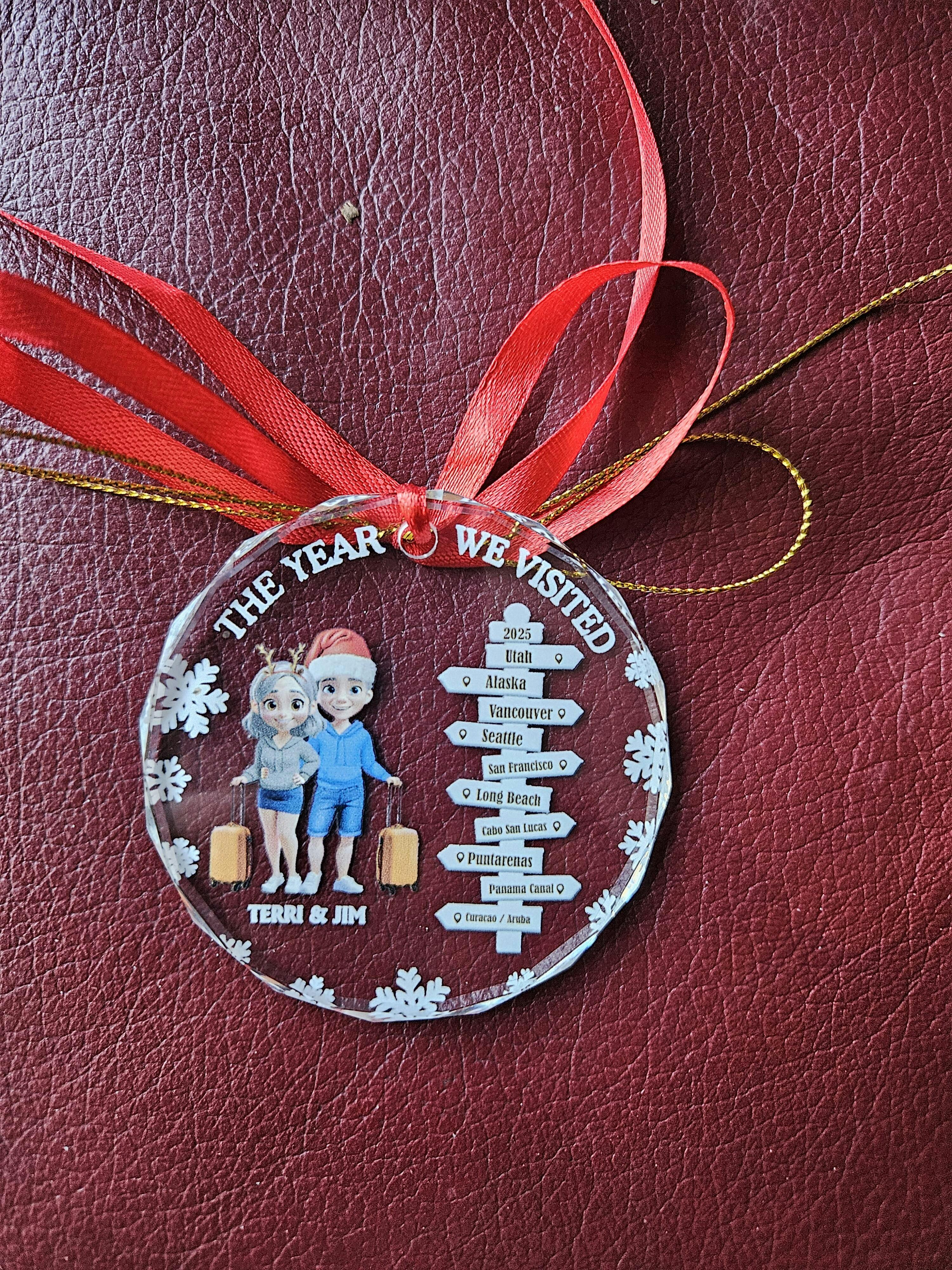 The Year We Visited Travel Ornament - Personalized Circle Glass Ornament