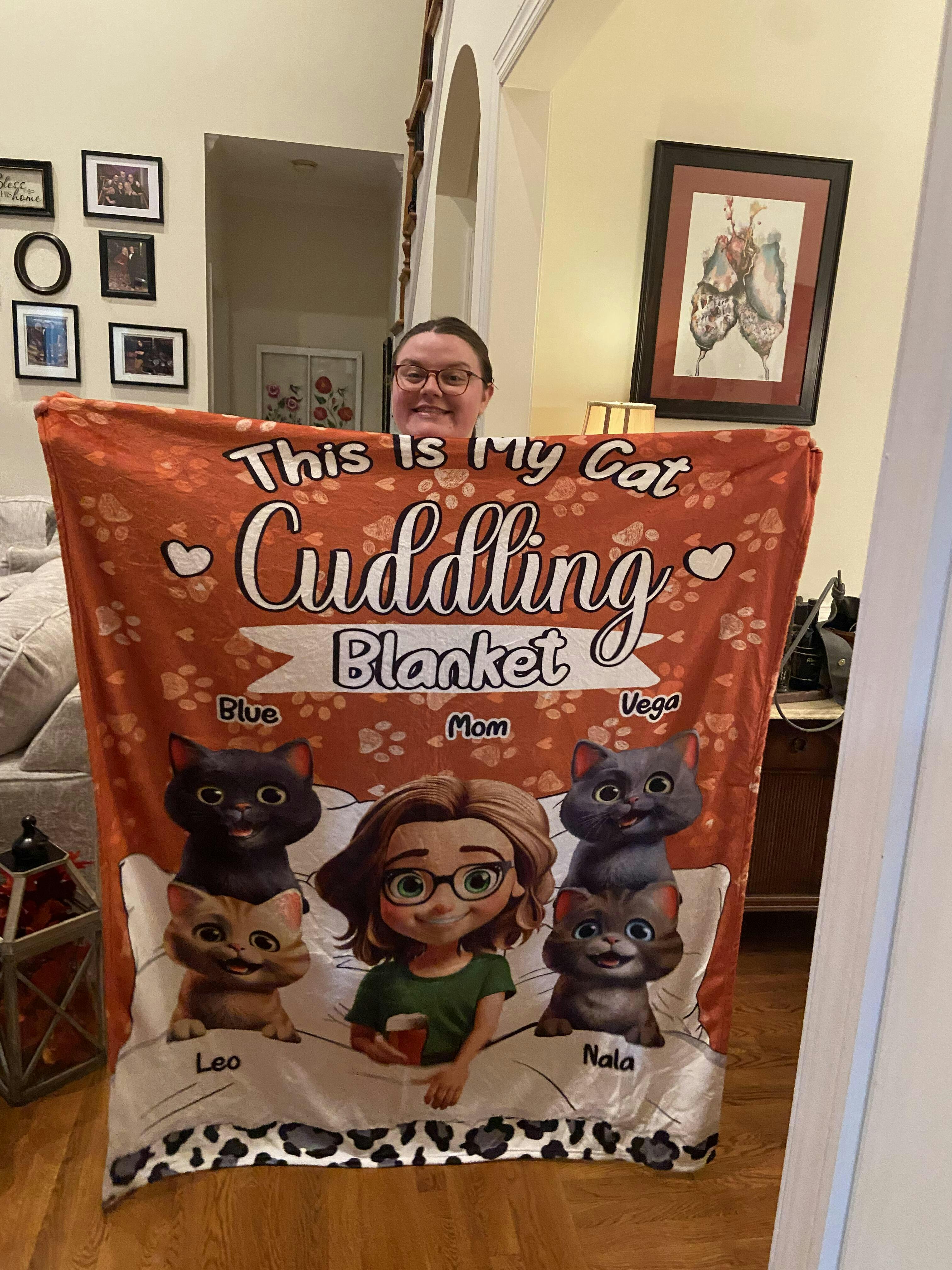 Wrap Yourself in Love with the My Cat Cuddling Blanket - Personalized Fleece Blanket, Sherpa Blanket! Snuggle up in warmth and happiness with this custom cat blanket, designed for every Cat Mom, Cat Dad, and Pet Lover who cherishes their furry friend.