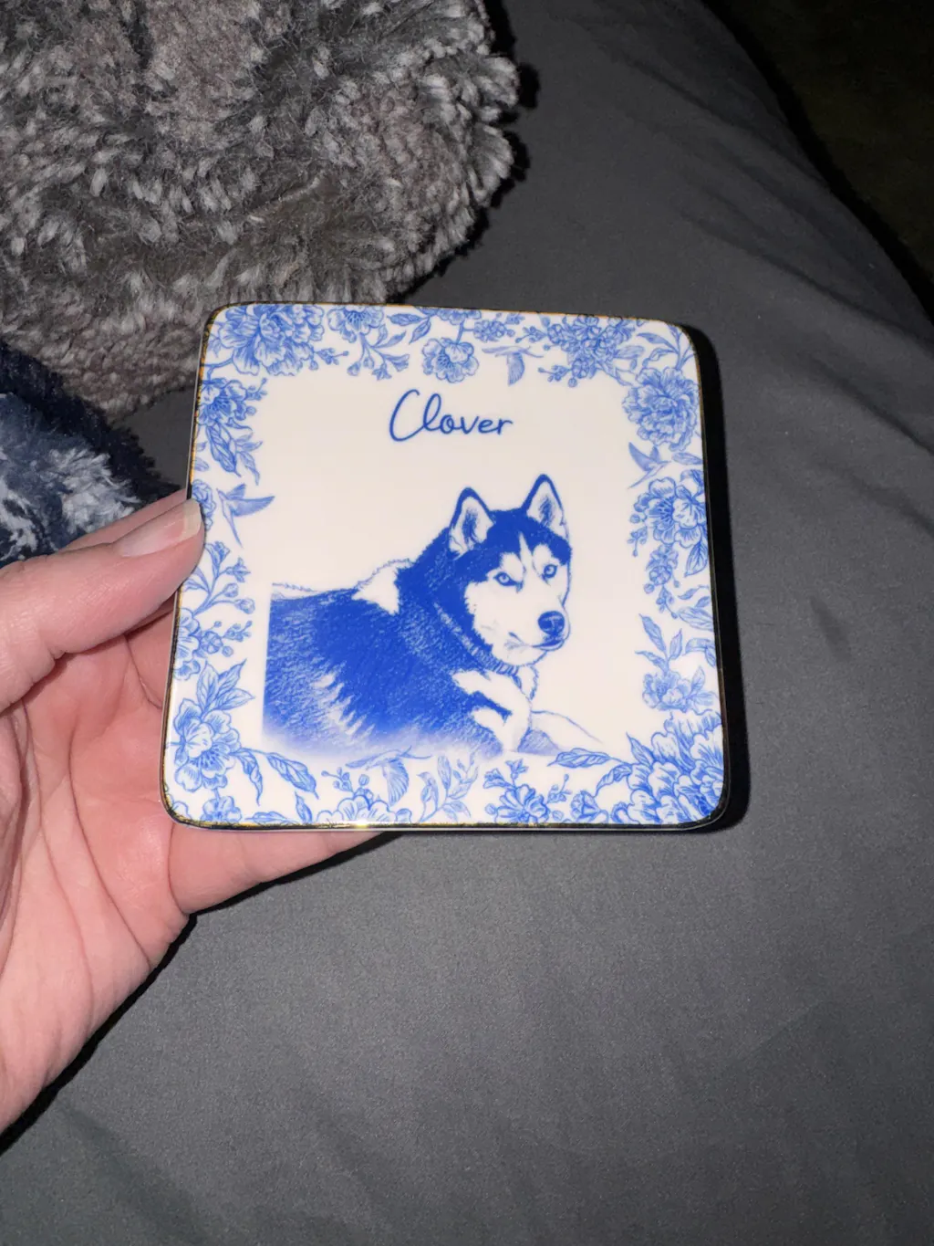 Custom Photo Pencil Sketch Pet Photo - Personalized Ring Dish