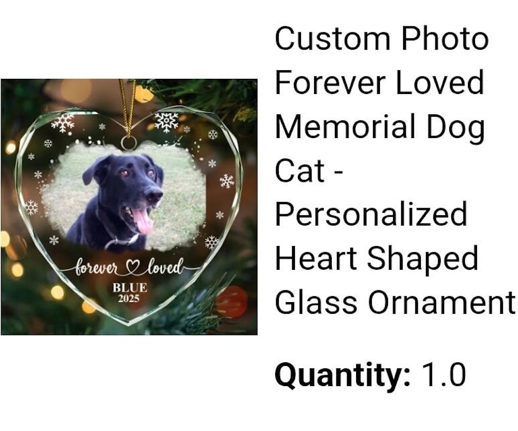 Discover a heartfelt way to cherish the memory of your furry companion with the Custom Photo Forever Loved Memorial Dog Cat - Personalized Heart Shaped Glass Ornament, a meaningful gift for pet lovers. Whether it’s for Christmas, birthdays, Pet Memorial Day, or to comfort someone grieving, this keepsake is a touching gift for dog lovers, cat lovers, and anyone who has loved and lost a loyal pet.