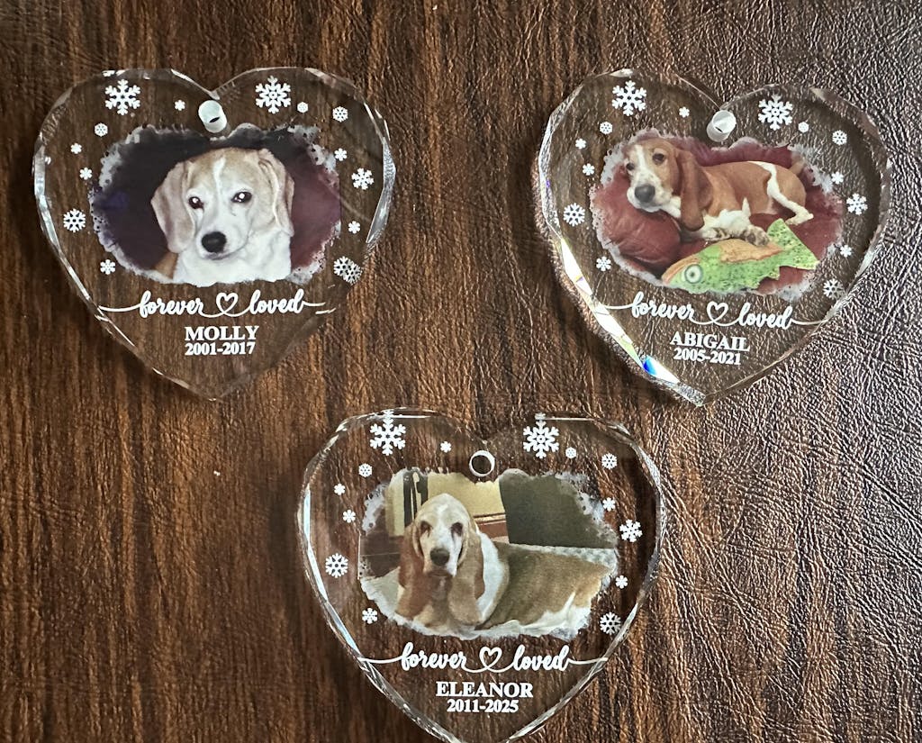 I loved the first 3 ornaments so much, I ordered 3 more for dogs that had passed years ago. They mean a lot to me still and the lovely ornaments with their photos are precious to me. Thank you for creating such a lovely memorial for my girls.