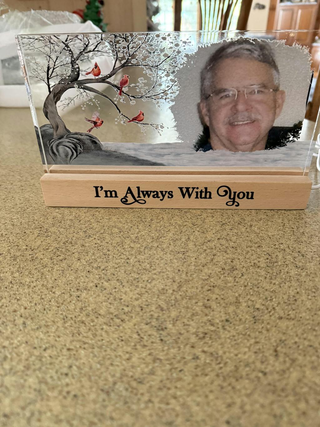 Crafted with care, this LED light features a custom photo and a touching message, creating a thoughtful and memorable tribute to a cherished family member. Its warm, gentle glow serves as a constant reminder of their enduring presence, providing sympathy and solace during times of sadness.