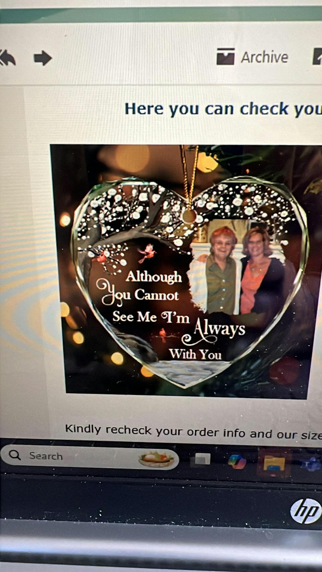 The only regret that I have is not chosing the item in a lager size, otherwise this is really nice, I ordered 3 of them and had put our Mother's picture in it, she passed 5 years ago, but she will always be with us.