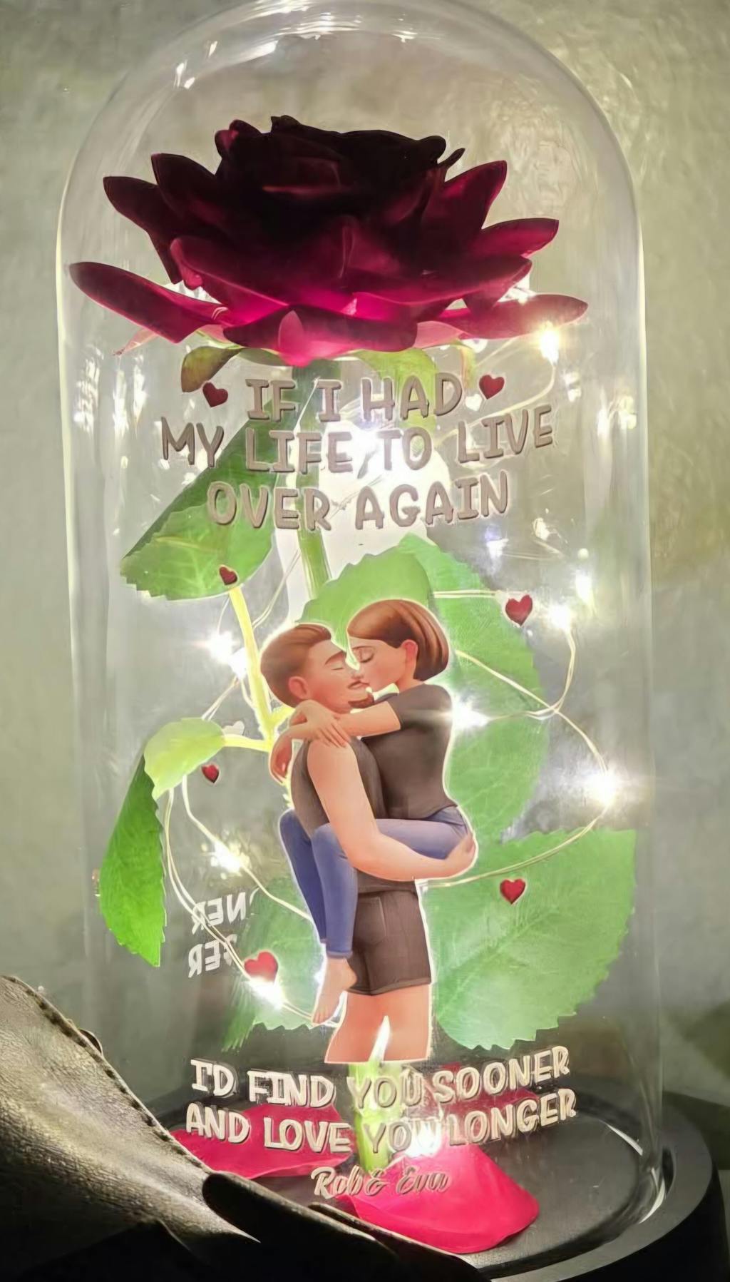 Together And Forever Yours - Personalized Everlasting Rose Dome Lamp