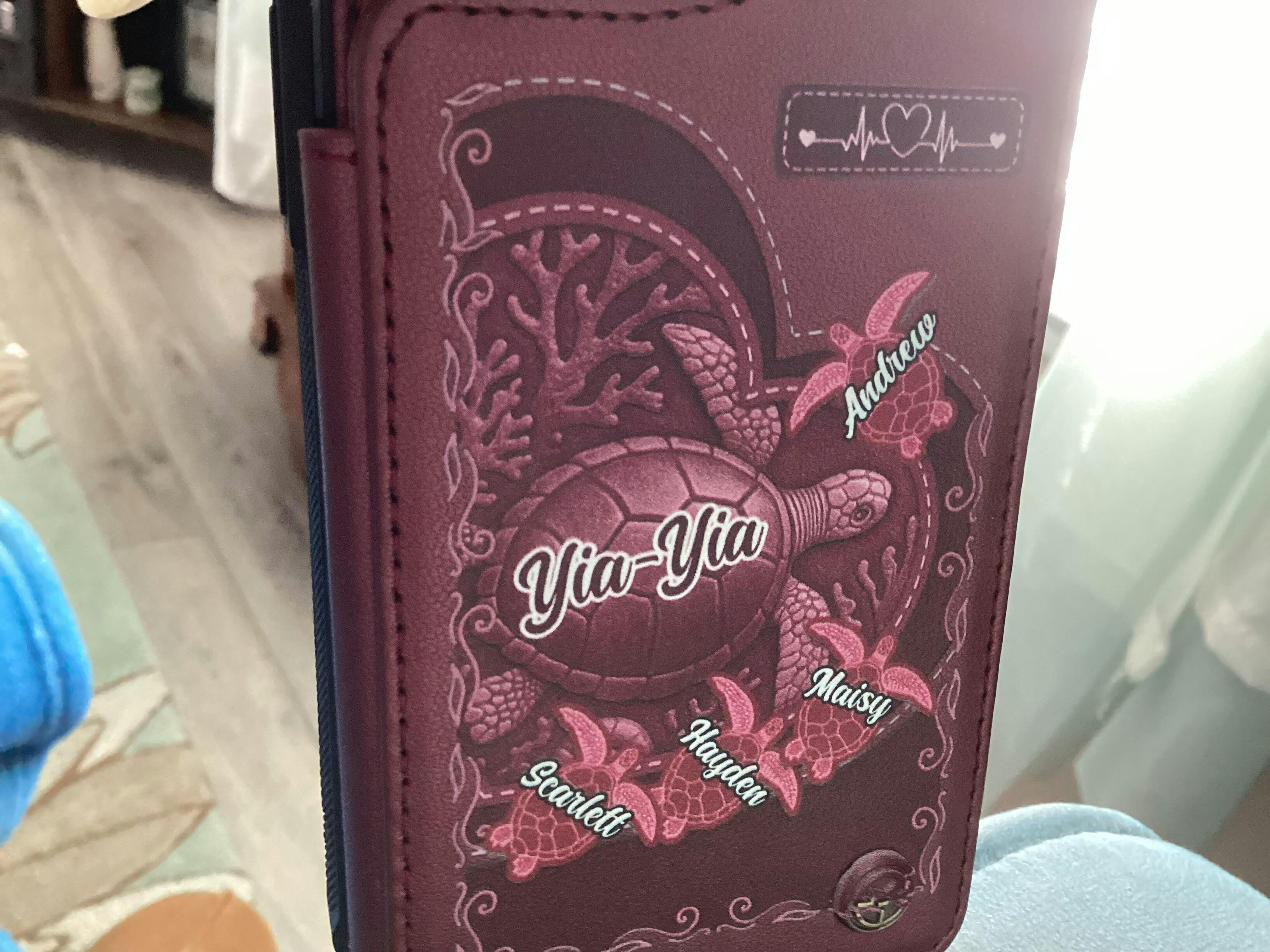 Discover a sentimental keepsake with the Grandma's Mom's Sea Turtle - Personalized Leather Flip Wallet Phone Case! This thoughtful gift for women, moms, or grandmas is perfect for Mother’s Day, birthdays, Christmas, Thanksgiving, or even Grandparents Day. With a heartfelt design and personalized names, this wallet case turns daily use into a meaningful and cherished expression of love.