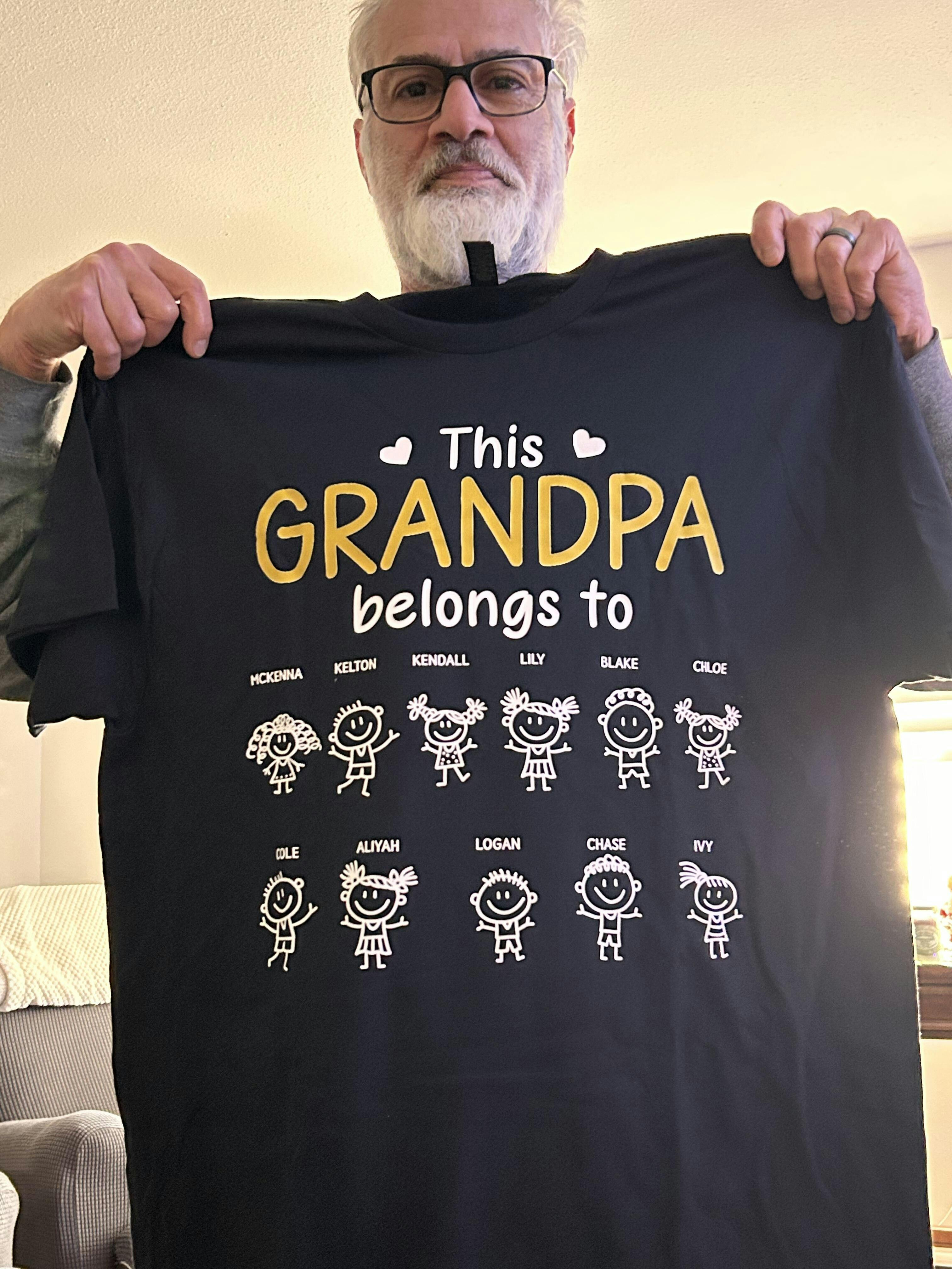 Made with comfort and durability in mind, this personalized tee features adorable stick figure designs of his beloved grandkids, turning it into a wearable keepsake. He can proudly wear it at family gatherings, casual outings, or even while relaxing at home, reminding him of the love that surrounds him.