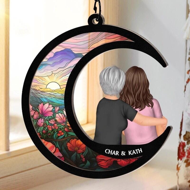 Sisters Besties Love You To The Moon - Personalized Window Hanging Suncatcher Ornament