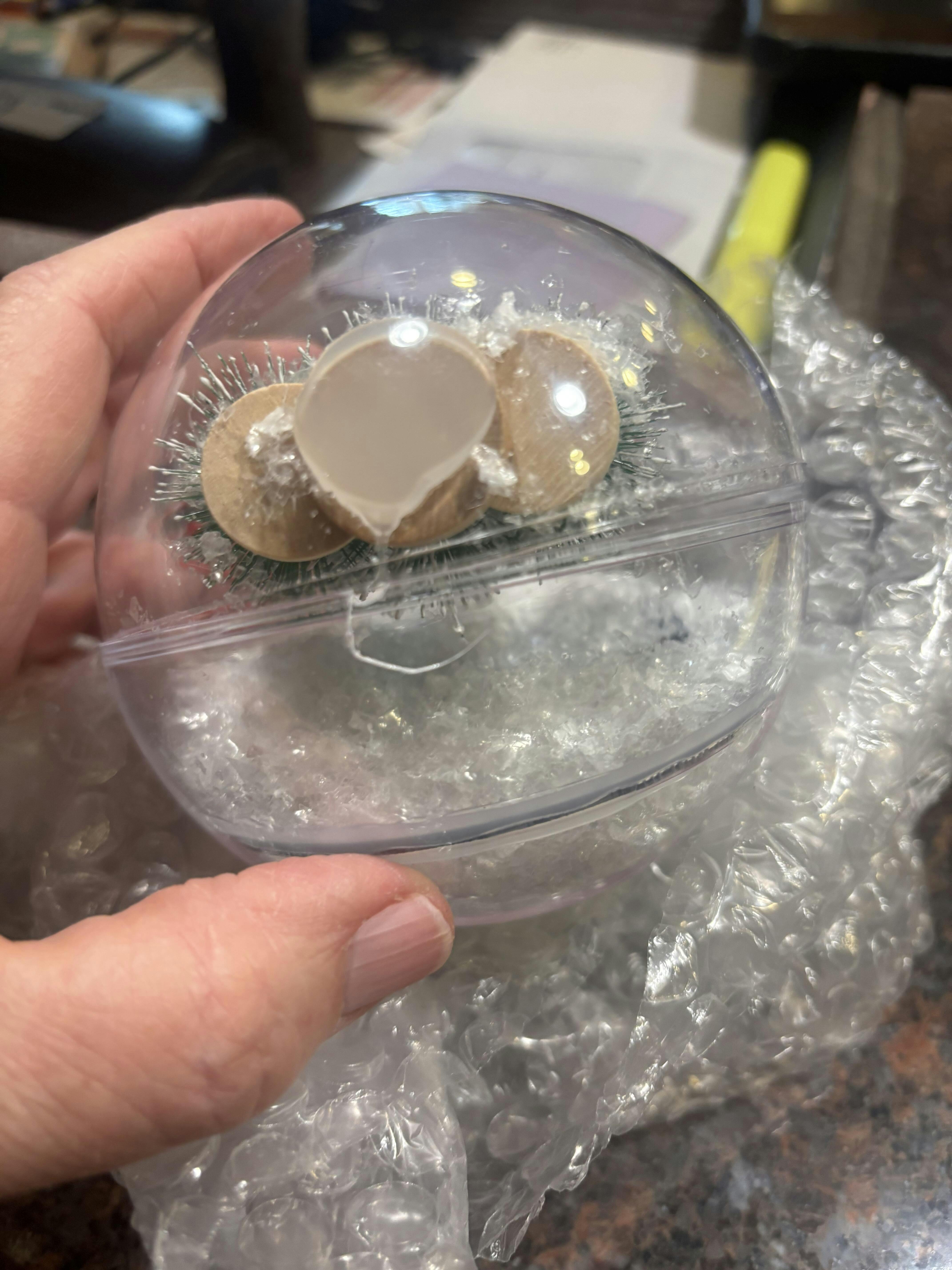 • Material: Plastic (ball), acrylic (insert), snow glitter.