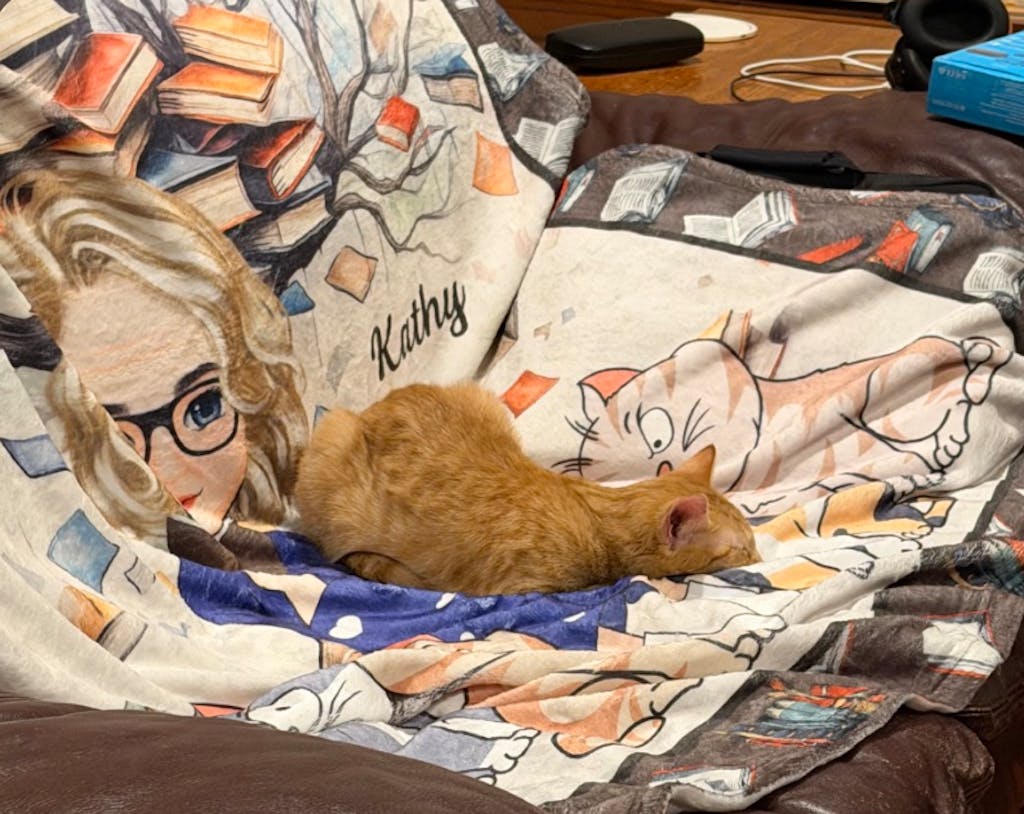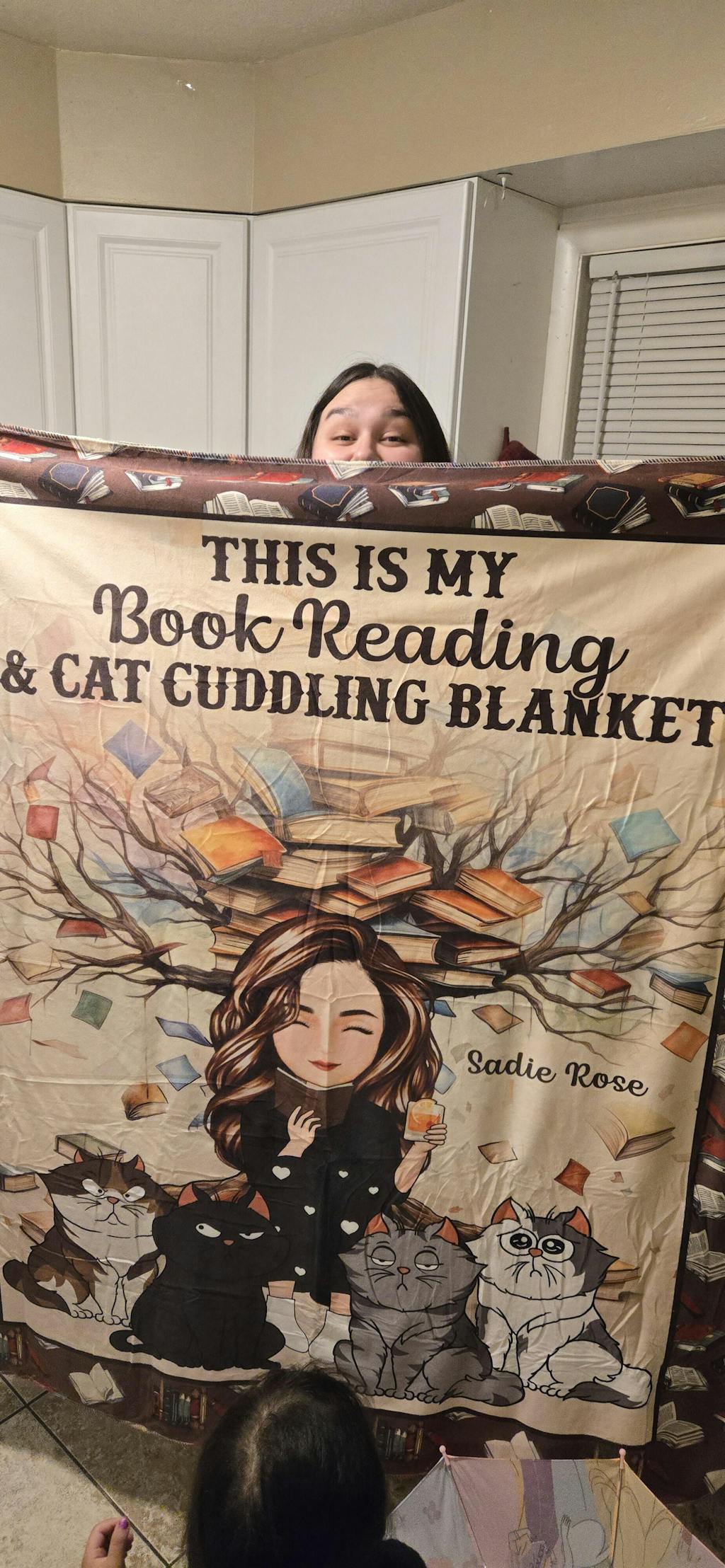 Cozy up with the Book Reading & Cat Cuddling Blanket - Personalized Fleece Blanket, Sherpa Blanket, perfect for those who cherish moments with their pets. This versatile blanket makes a wonderful gift for pet lovers, pet moms, pet dads, cat lovers, cat moms, and cat dads on Mother's Day, Father's Day, Thanksgiving, Christmas, birthdays, and anniversaries.