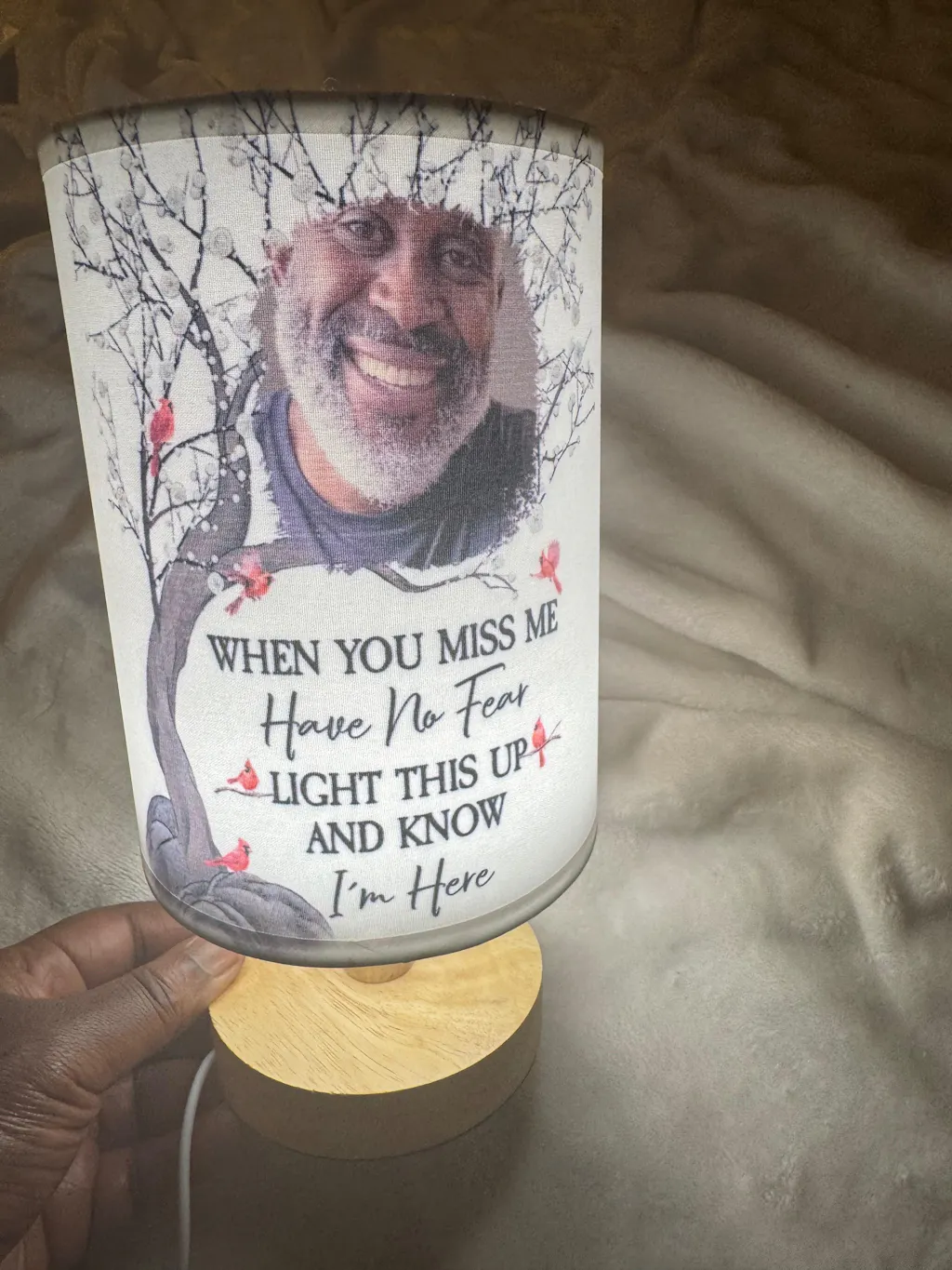 Discover heartfelt comfort with the Custom Photo When You Miss Me Have No Fear Memorial - Personalized Fabric Lamp – a touching gift for grandparents, parents, or siblings on Memorial Day, Christmas, Father’s Day, or Birthday. This meaningful lamp brings light and love during moments of remembrance, making it an unforgettable tribute to those we’ve lost.