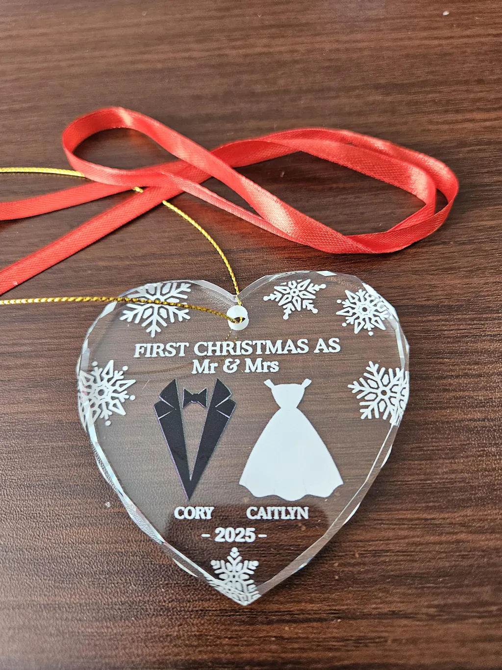 Commemorate your first Christmas as a married couple with the First Christmas As Married Couples - Personalized Heart Shaped Glass Ornament. This elegant and heartfelt ornament is an ideal gift for couples, including husbands, wives, boyfriends, and girlfriends, on Valentine’s Day, Mother’s Day, Father’s Day, Thanksgiving, Christmas, birthdays, and anniversaries.