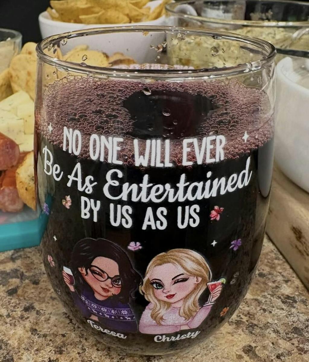 No One Will Ever Be As Entertained By Us As Us Bestie - Personalized Stemless Wine Glass