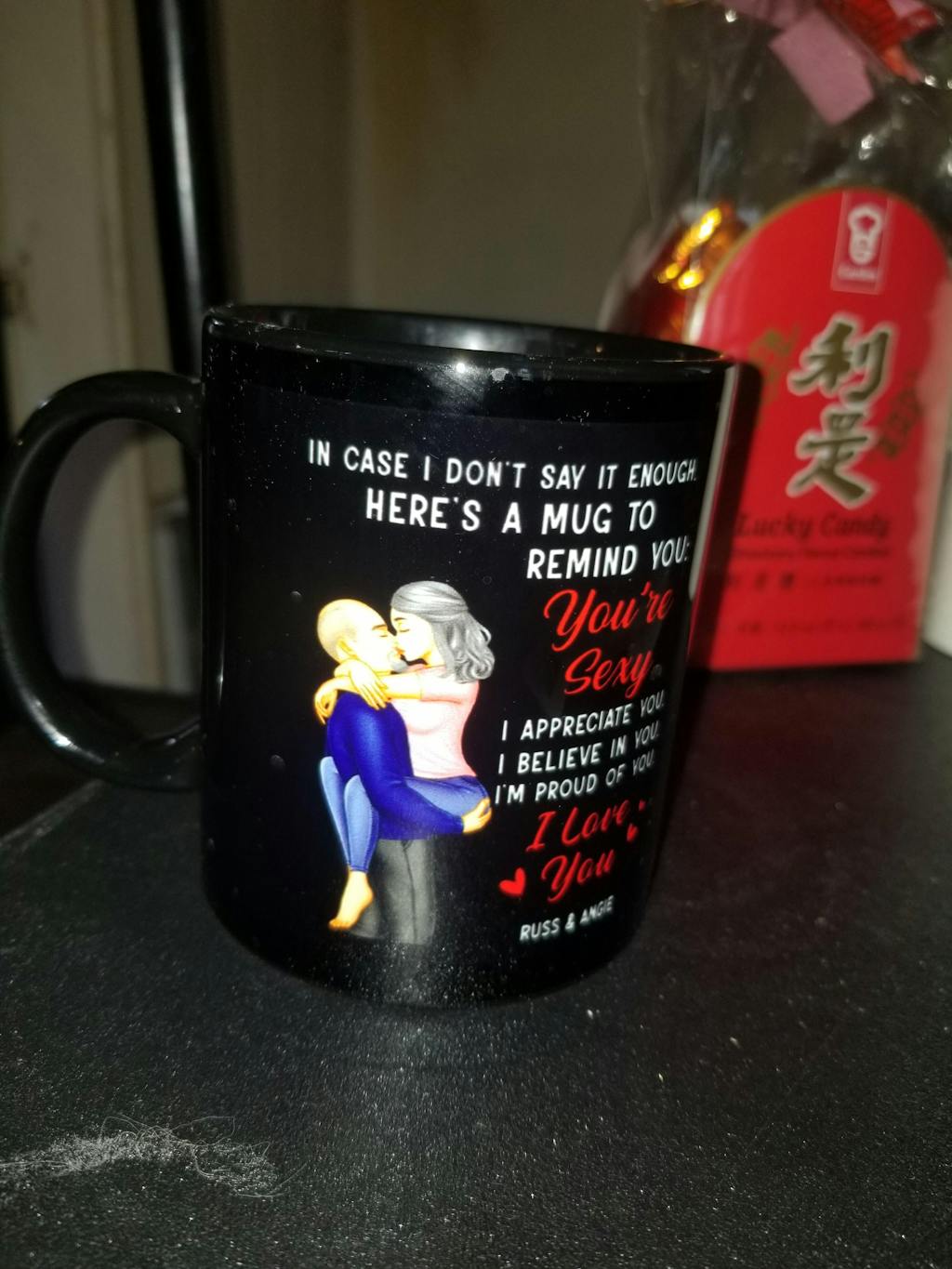 Message: "In case I don't say it enough. Here's a mug to remind you: you're sexy. I appreciate you. I believe in you. I'm proud of you".