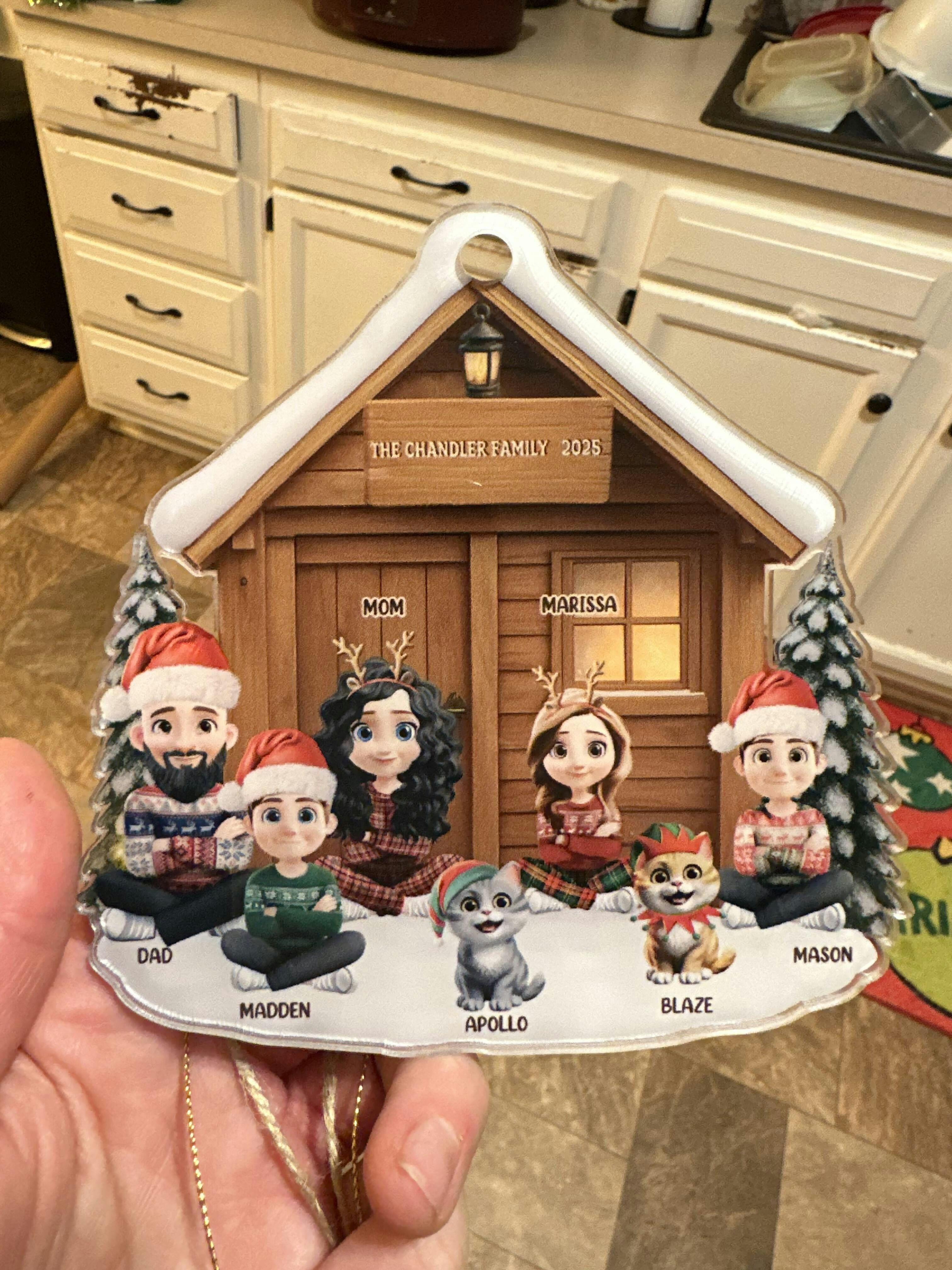 Christmas Sitting Family Parents Kids Pets - Personalized Custom Shaped Acrylic Ornament