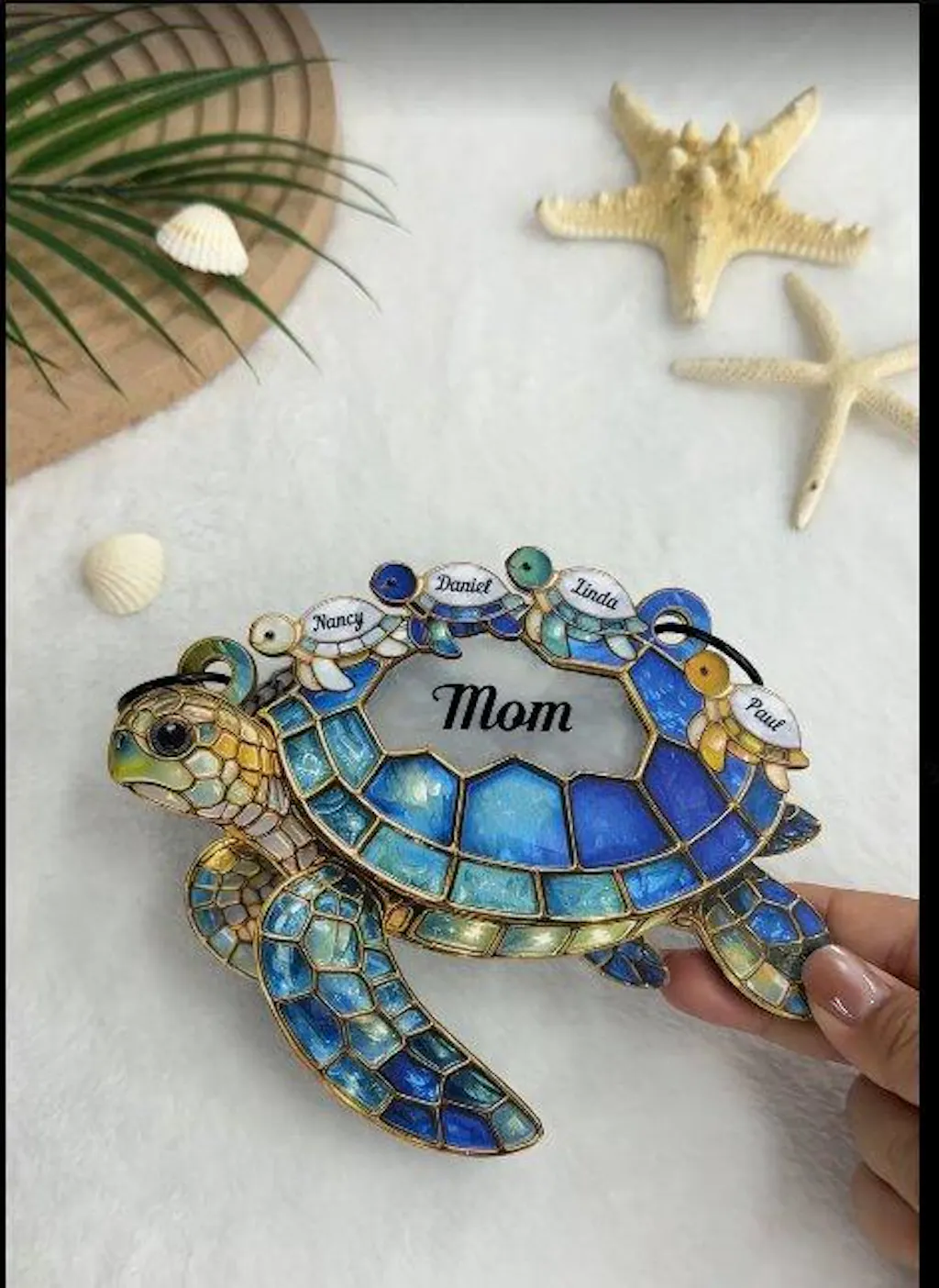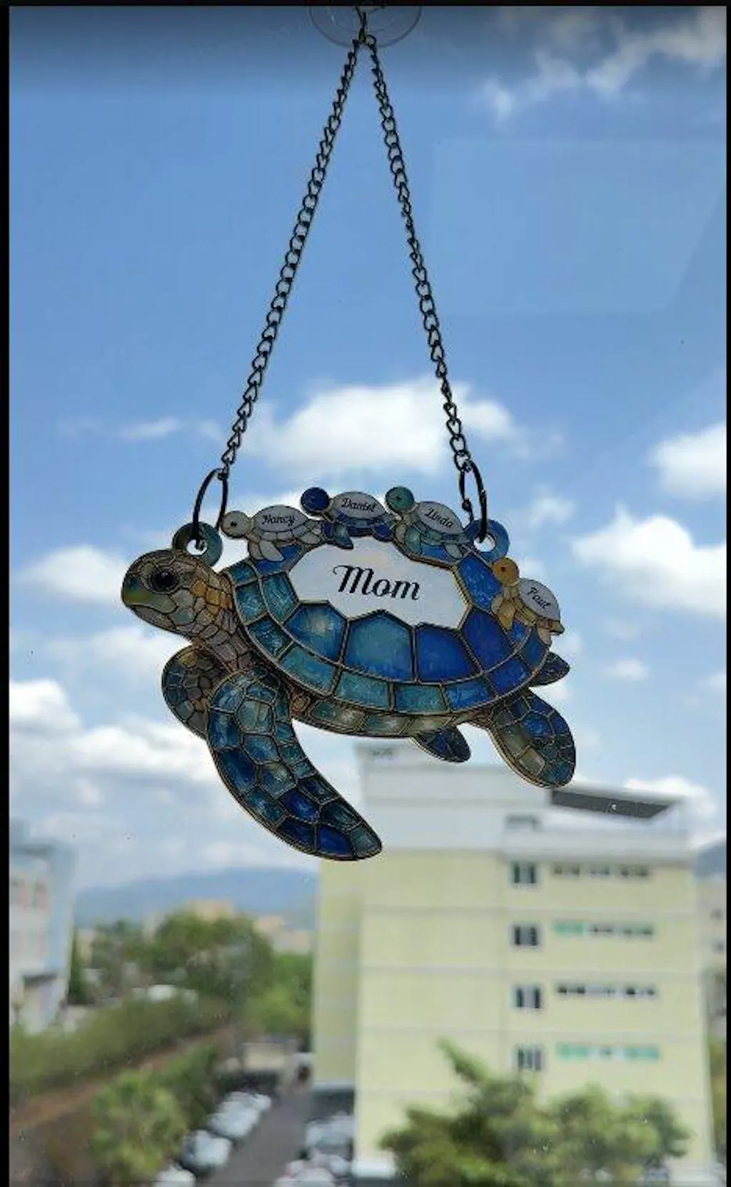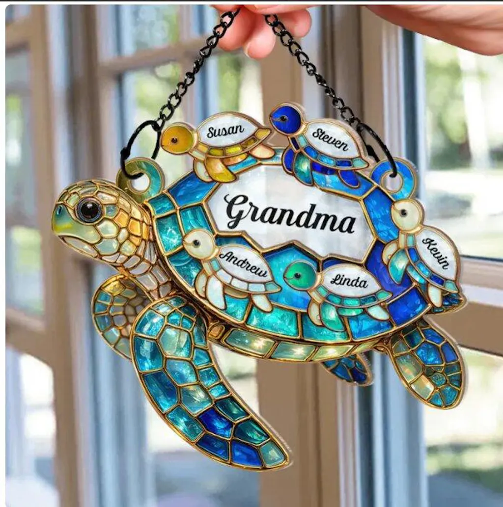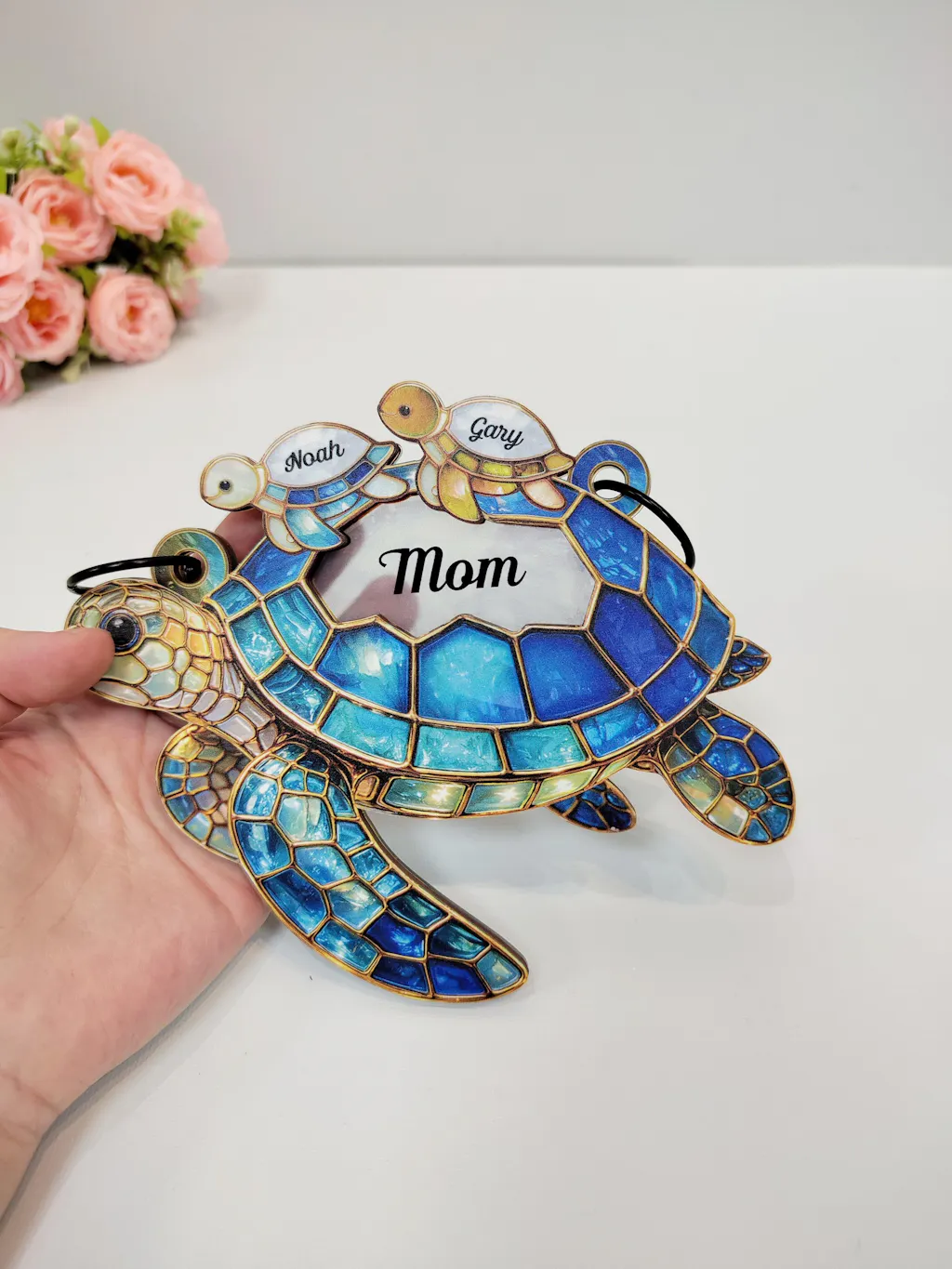 Turtle Stained Glass Mom Grandma - Personalized Window Hanging Suncatcher Ornament