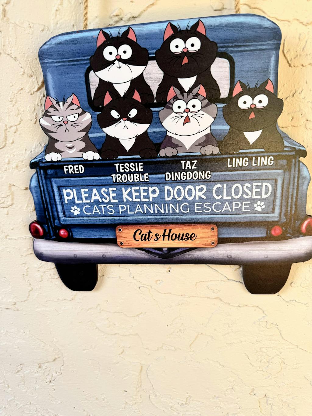 Cats Planning Escape Truck - Personalized Custom Shaped Wood Sign