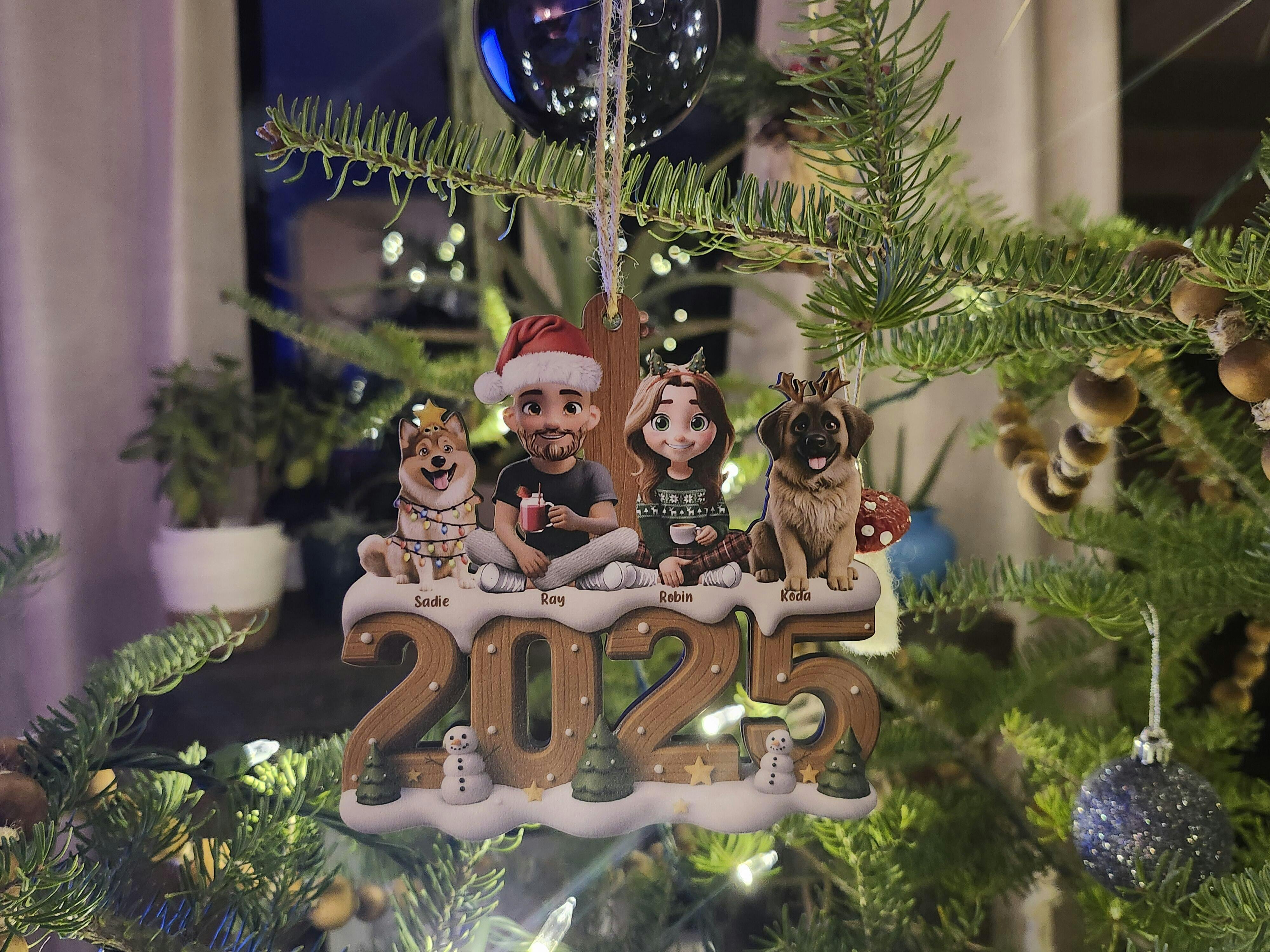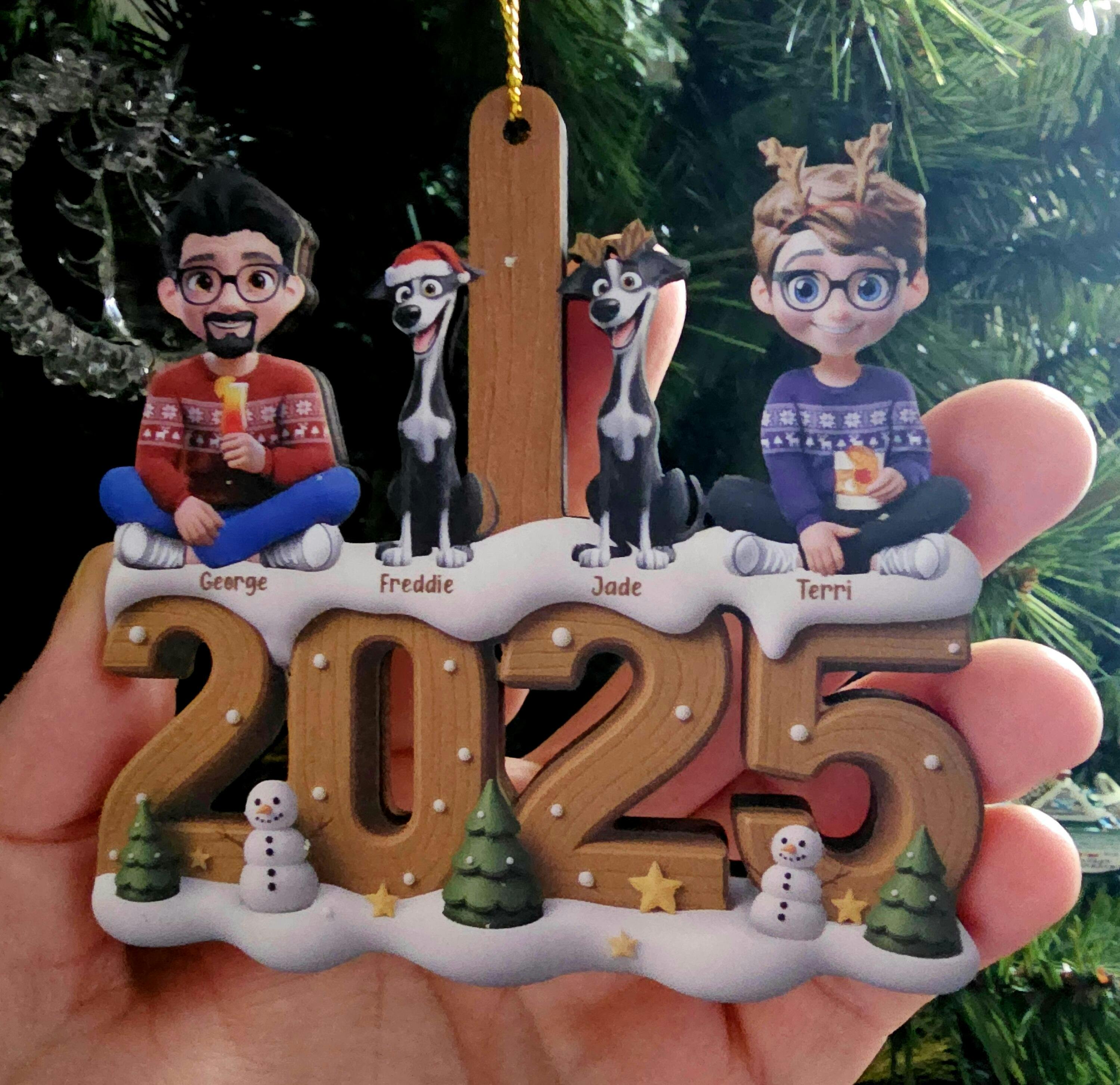 3D Effect Christmas Family And Dog Cat - Personalized Custom Shaped Wooden Ornament