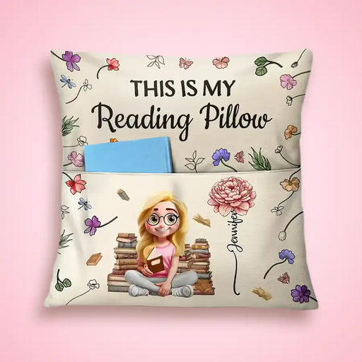 Top Market,Reading,Gift For Yourself,Gift For Women,Happy - My Reading Pillow Reading Girl With Birth Month Flower - Personalized Pocket Pillow
