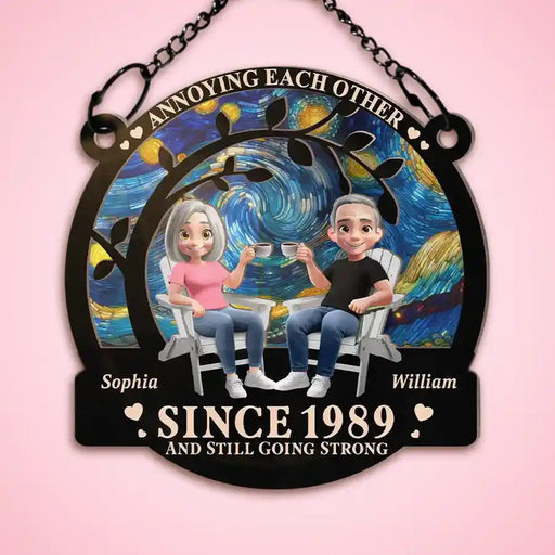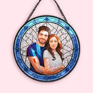 Custom Photo Portrait Couple Family - Personalized Stained Glass Window Hanging Suncatcher