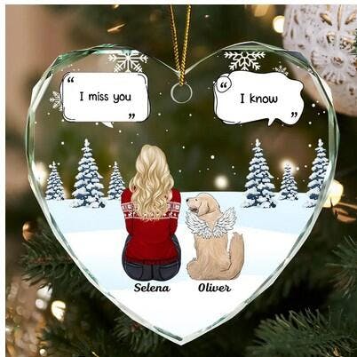 Honor the memory of your cherished pet with the I Miss You Memorial Dog Cat - Personalized Heart-Shaped Glass Ornament. This heartfelt and unique ornament is ideal for Cat Lovers, Dog Lovers, Cat Moms, Cat Dads, Dog Moms, and Dog Dads. Featuring a custom name, it offers a meaningful tribute to beloved pets during special occasions such as Christmas, Thanksgiving, Mother's Day, Father's Day, birthdays, and anniversaries.