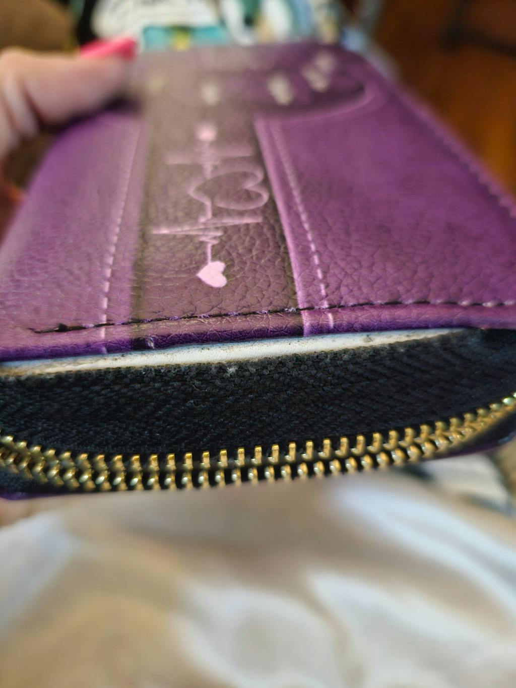 - Gold zipper and black wrist strap