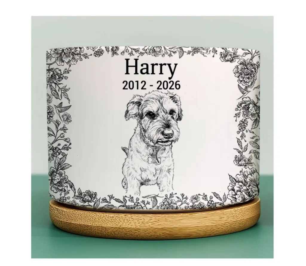Custom Photo Pencil Sketch Dog Cat Memorial - Personalized Ceramic Plant Pot