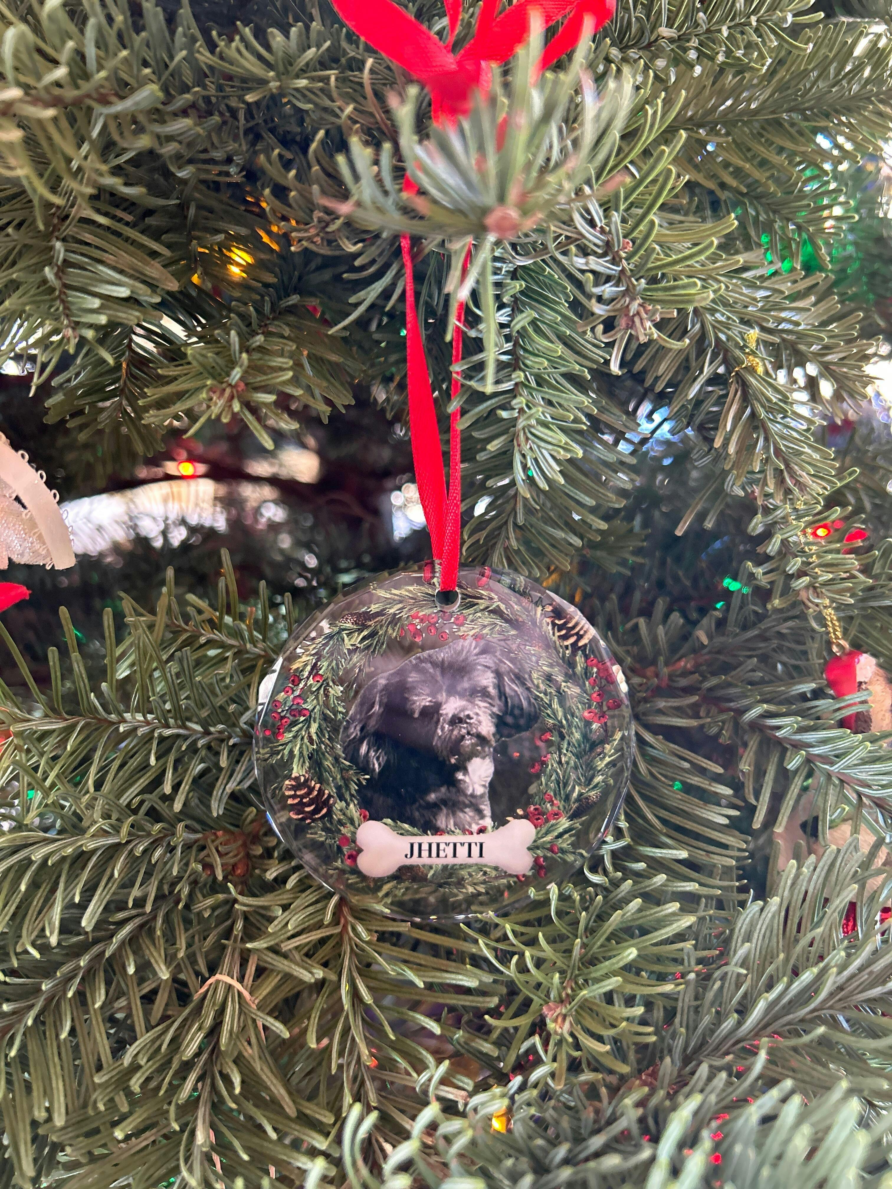 My Bestest and Goodest Boy just passed after 16 years together. I miss him so very much. His ornament arrived today and it is just perfect! They centered his photo in a green an red wreath. His name is perfect. It is a heavy, glass keepsake- it looks very fine. It also came with two ribbons; a bright red ribbon and a slender, gold cord. I love it and will cherish it!