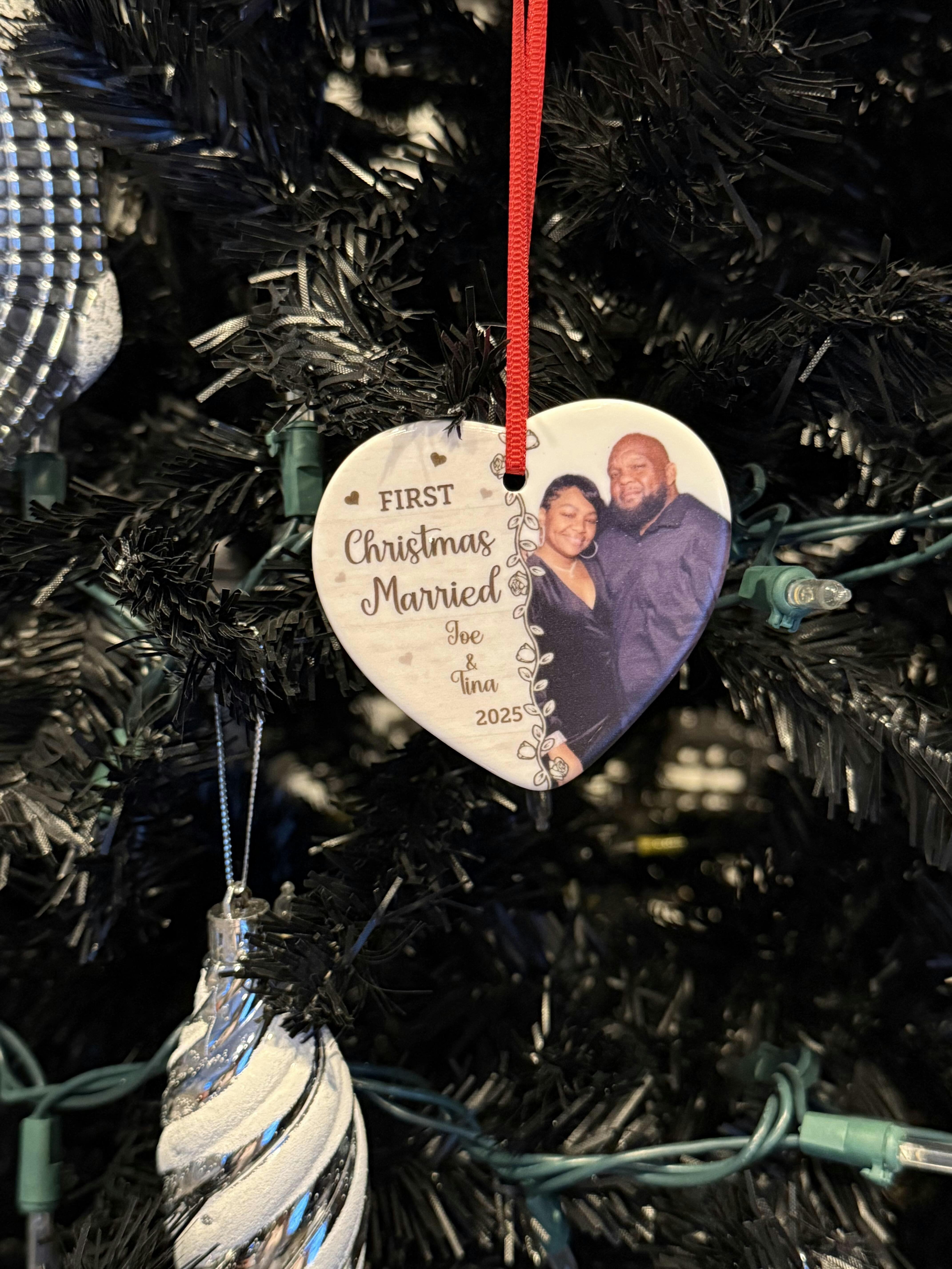 Décoration de Noël personnalisée en céramique avec photo de votre premier mariage