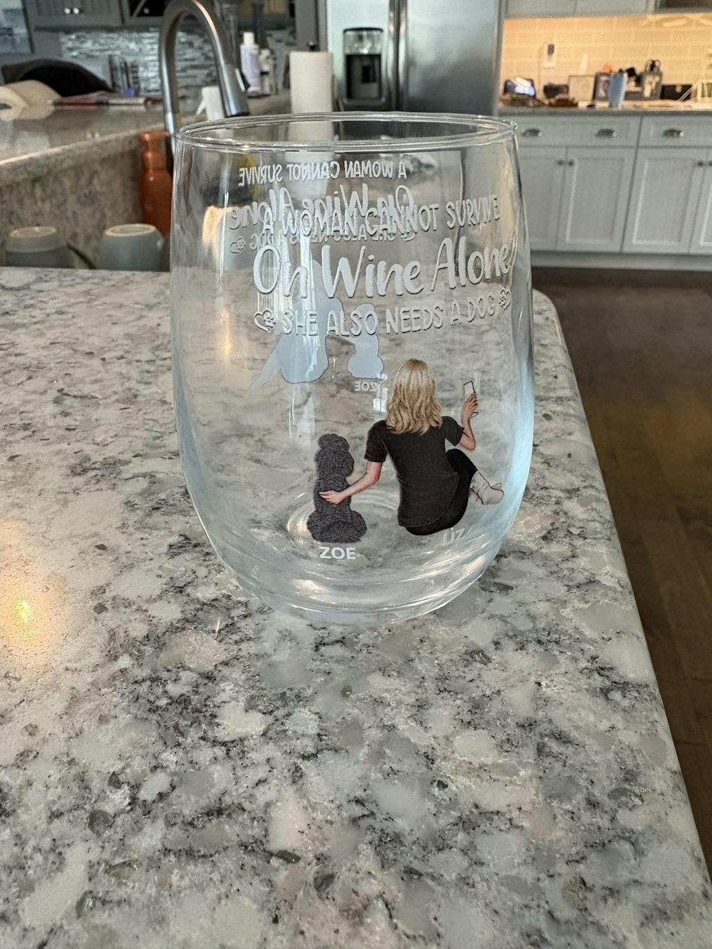 Célébrez des moments de joie et de détente avec le verre à vin sans pied personnalisé « Une femme ne peut survivre qu'avec du vin ». Ce verre est un cadeau idéal pour vous-même, les femmes, les amoureux des animaux, les mamans d'animaux, les mamans de chiens, les amoureux des chiens, pour la fête des Mères, Thanksgiving, Noël, les anniversaires et autres occasions spéciales. Son design ludique et sa personnalisation ajoutent une touche personnelle et significative.