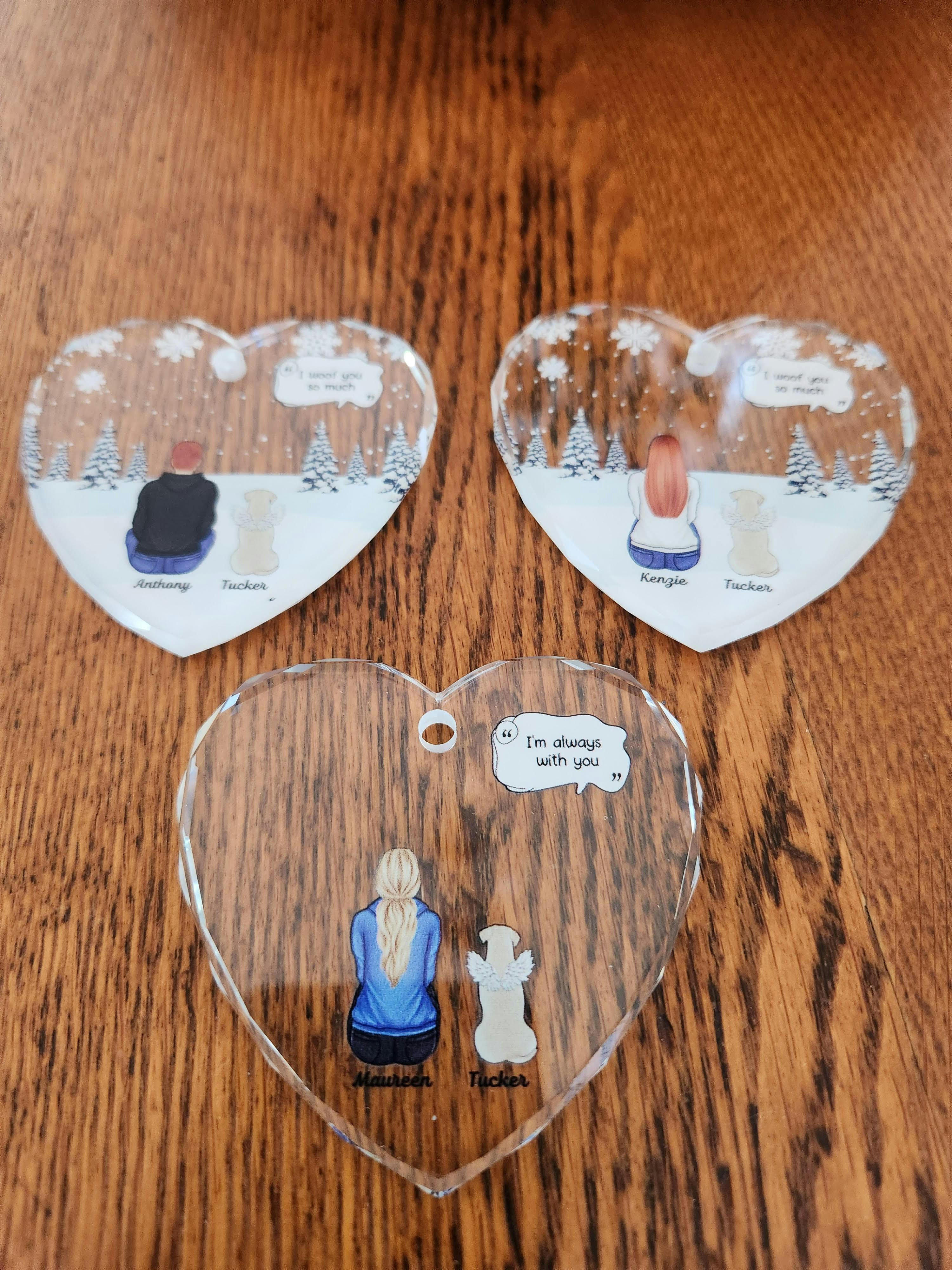 Honorez la mémoire de votre animal chéri avec la décoration commémorative en verre en forme de cœur « I Miss You » personnalisée pour chien et chat. Cette décoration unique et touchante est idéale pour les amoureux des chats, des chiens, des mamans et des papas de chats, ainsi que pour les mamans et les papas de chiens. Avec son nom personnalisé, elle rend un hommage significatif à vos animaux de compagnie lors d'occasions spéciales comme Noël, Thanksgiving, la fête des Mères, la fête des Pères, les anniversaires et autres célébrations.
