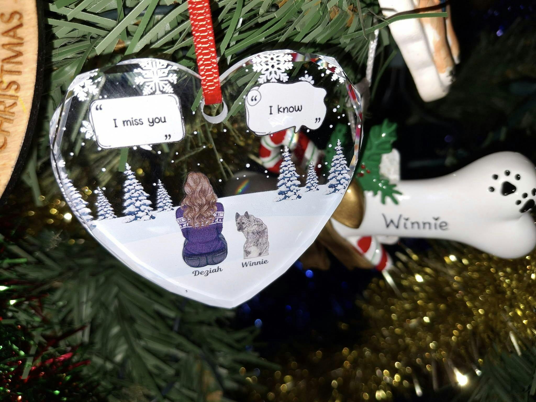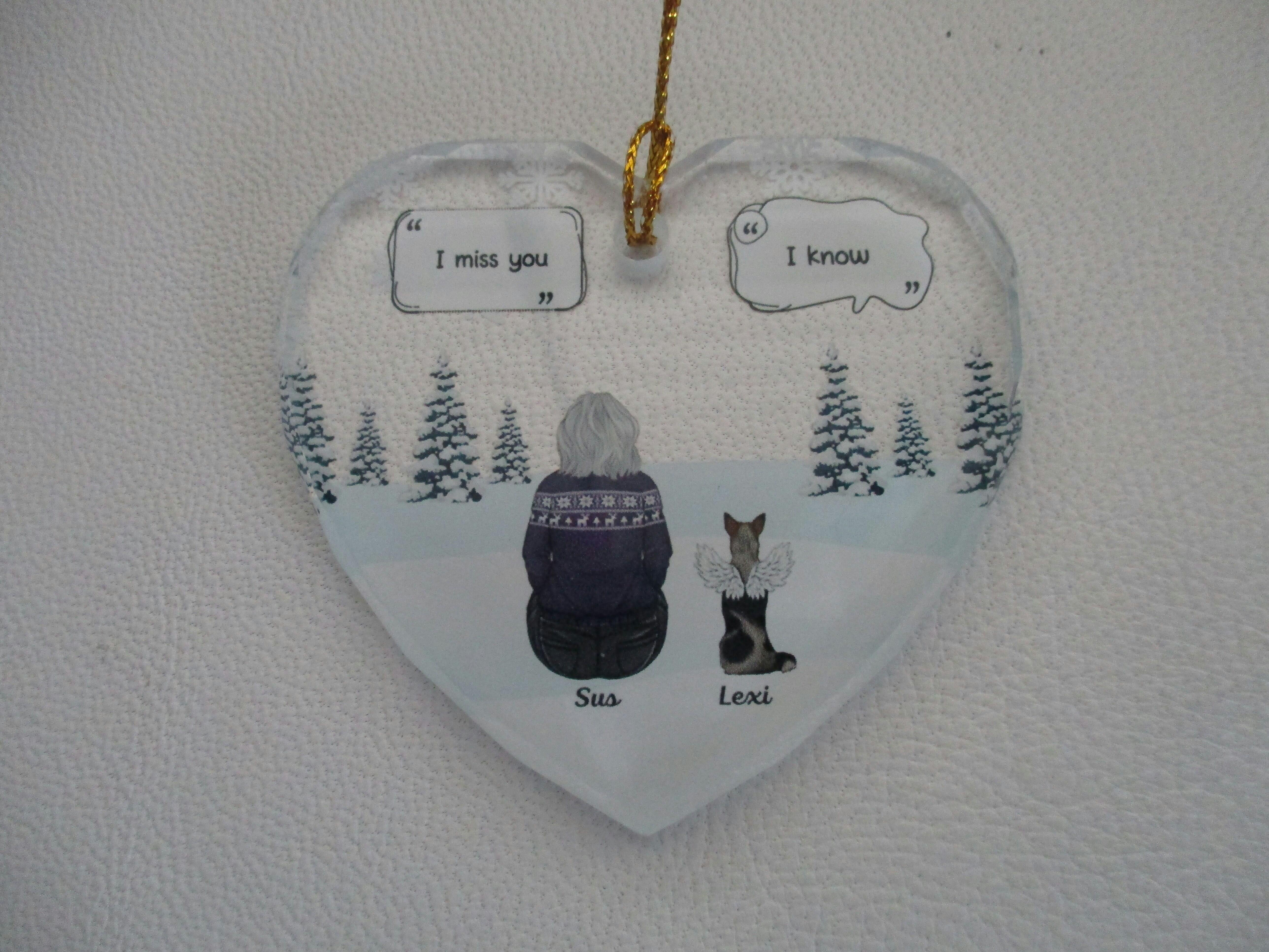 Ornement en verre personnalisé en forme de cœur pour chien et chat « Tu me manques »
