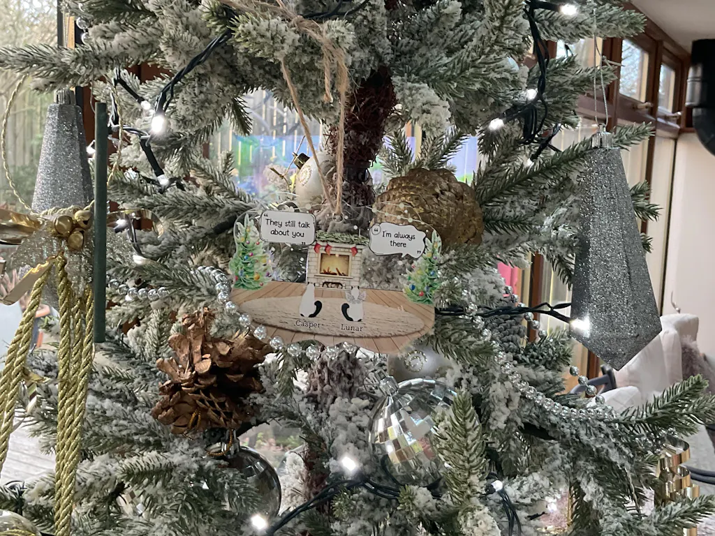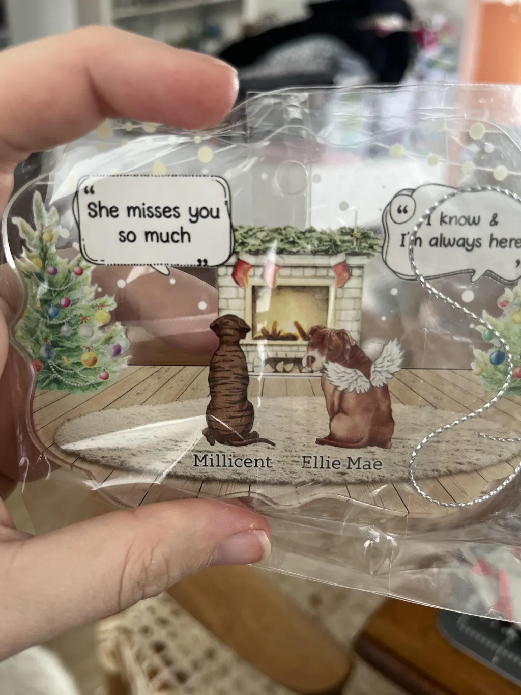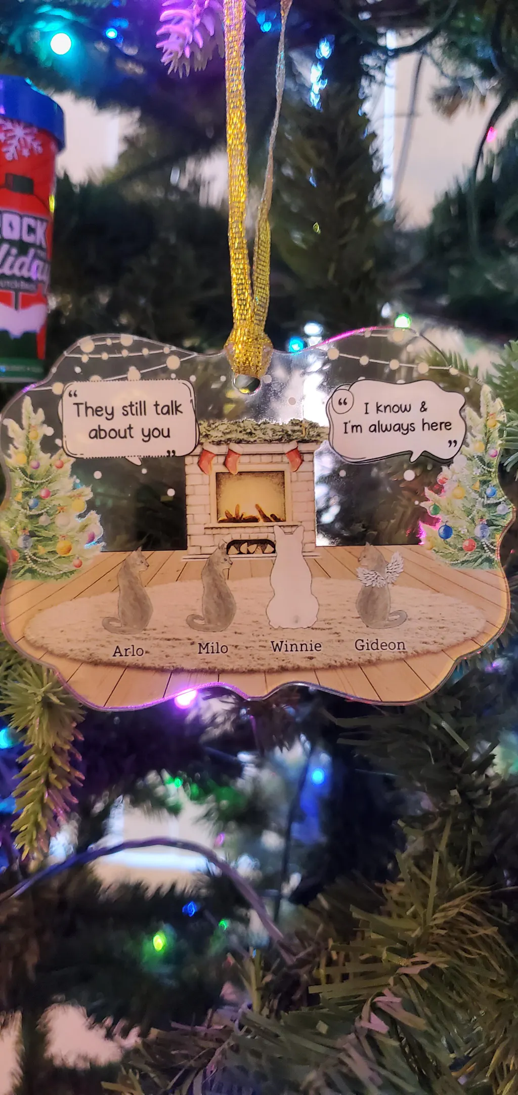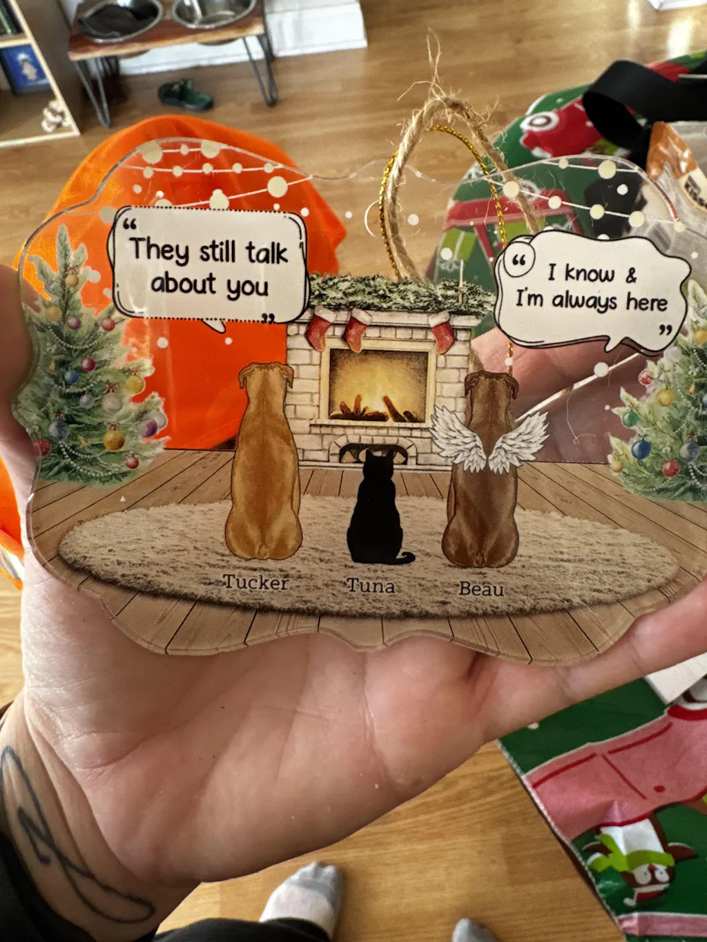 Ils parlent encore de toi Cozy House - Cadeau de Noël commémoratif pour les amoureux des animaux - Ornement médaillon en acrylique personnalisé