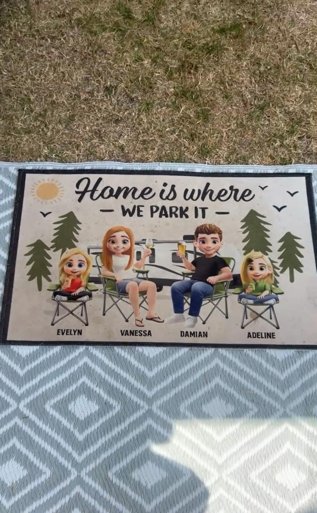 Faites de chaque emplacement de camping une véritable maison avec le paillasson personnalisé « Home Is Where We Park It », un cadeau idéal pour les familles en camping ! Idéal pour les anniversaires, Noël, Thanksgiving, la fête des Pères, la fête des Mères ou les aventures en camping-car, ce paillasson apportera une touche de joie et de chaleur à votre camping-car.