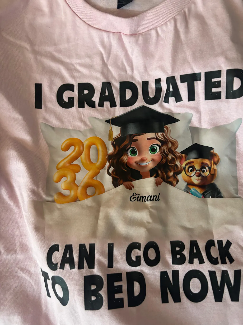 Célébrez votre remise de diplôme avec style grâce au t-shirt personnalisé « J'ai obtenu mon diplôme, puis-je retourner au lit maintenant » ! Ce cadeau original et amusant pour les diplômés ajoute une touche d'humour à cette grande réussite. Que ce soit pour vous-même ou pour un proche, ce t-shirt saura vous faire sourire et rire.