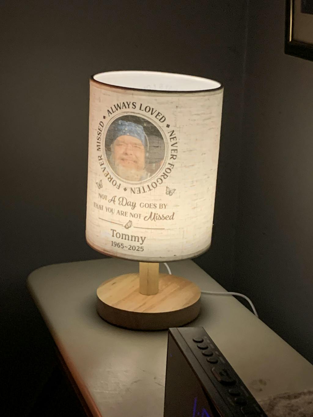 Célébrez un souvenir précieux avec la lampe photo personnalisée « Toujours aimé, jamais oublié » en tissu. Un cadeau précieux pour les grands-parents, les parents, les frères et sœurs ou tout autre membre de la famille. Idéal pour Noël, la fête des Mères, la fête des Pères, Thanksgiving, un anniversaire ou une cérémonie commémorative, cet hommage touchant apportera chaleur et amour à n'importe quelle pièce.