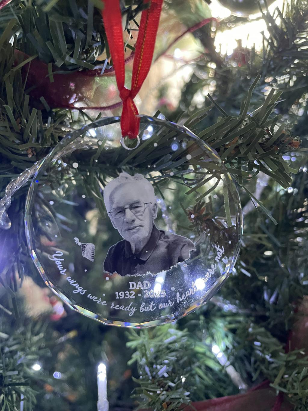 Soigneusement confectionnée en verre 100 % transparent aux bords biseautés, la décoration commémorative personnalisée « Vos ailes étaient prêtes » en verre circulaire dégage une élégance intemporelle. Elle capte et reflète magnifiquement la lumière pour apporter une touche lumineuse à votre sapin de Noël, couronne ou manteau de cheminée. Ses bords biseautés créent un effet prismatique saisissant, lui conférant une allure sophistiquée et multidimensionnelle. Sa surface lisse et transparente est idéale pour la personnalisation : vous pouvez y ajouter une photo et un message chaleureux pour honorer la mémoire d'un être cher.