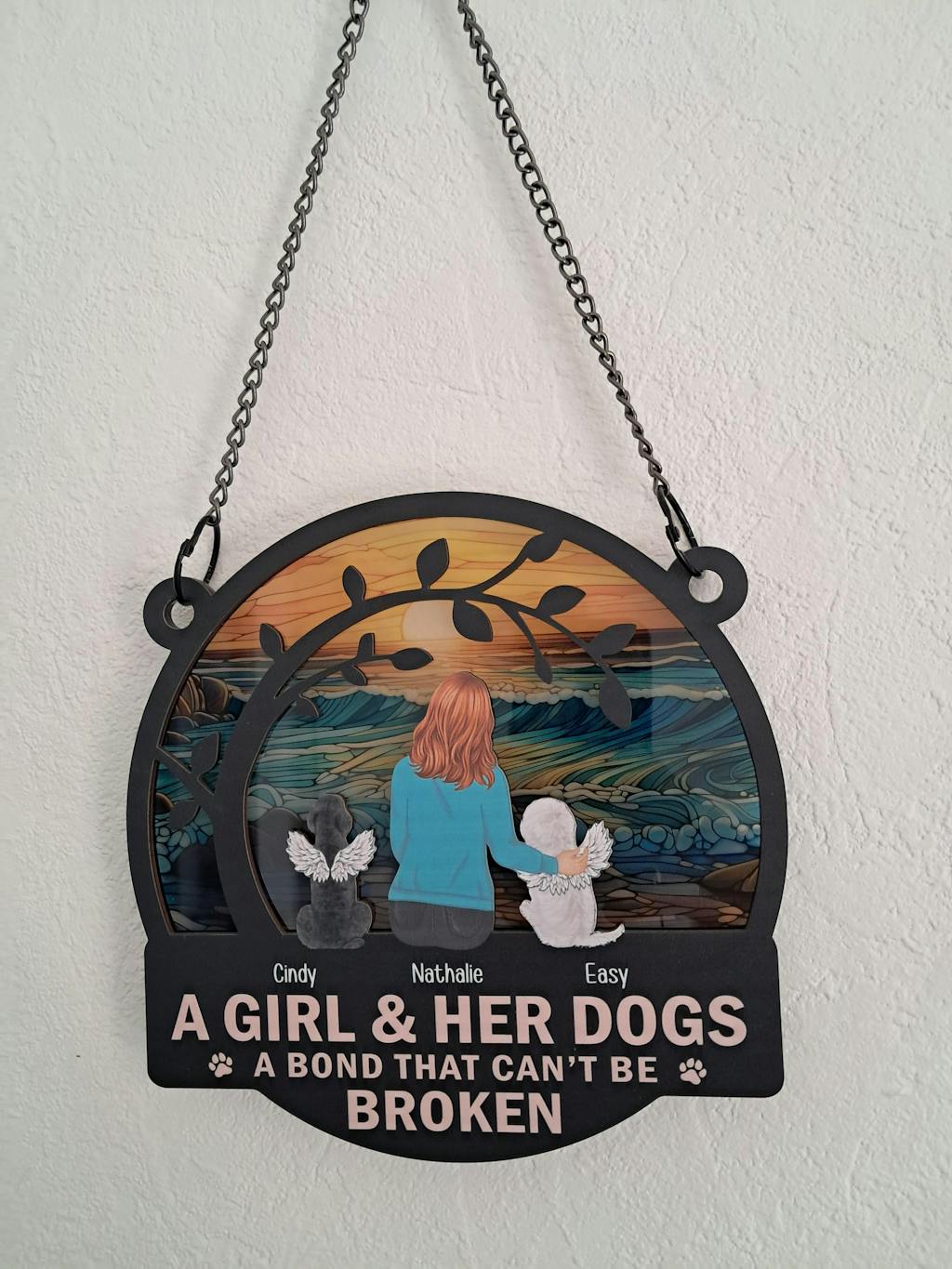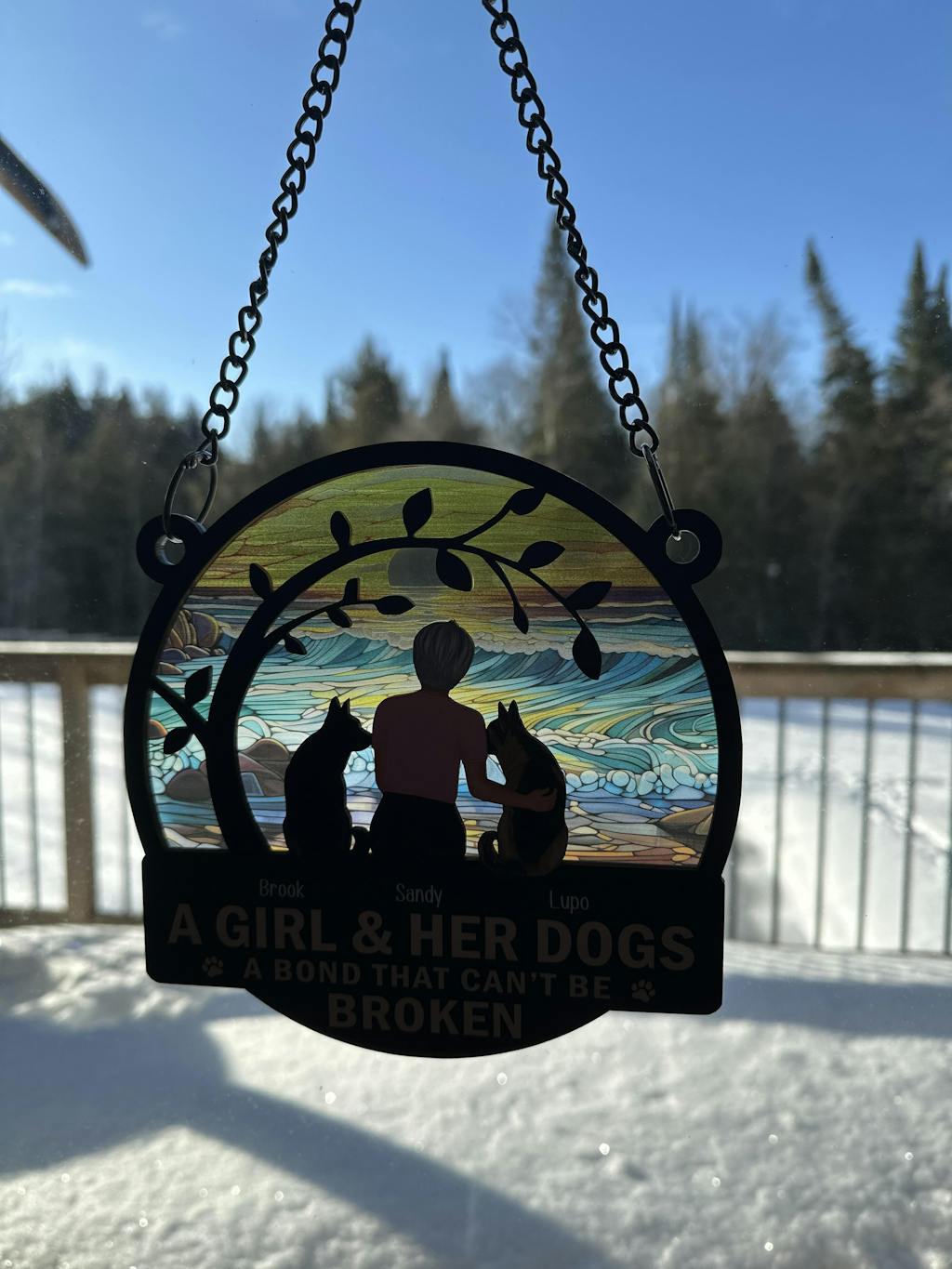 Illuminez votre intérieur avec l'attrape-soleil personnalisé « Une fille et son chien » à suspendre sur une fenêtre. Ce magnifique ornement est un cadeau idéal pour les amoureux des animaux, les mamans, les papas, les amoureux des chiens, les mamans de chiens, les amoureux des chats, les papas de chats et les mamans de chats, pour la fête des Mères, la fête des Pères, Thanksgiving, Noël, les anniversaires et autres célébrations.