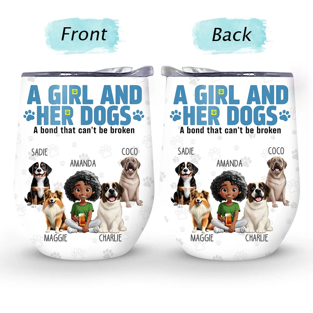 A Girl And Her Dogs A Bond That Can't Be Broken - Personalized Wine Tumbler