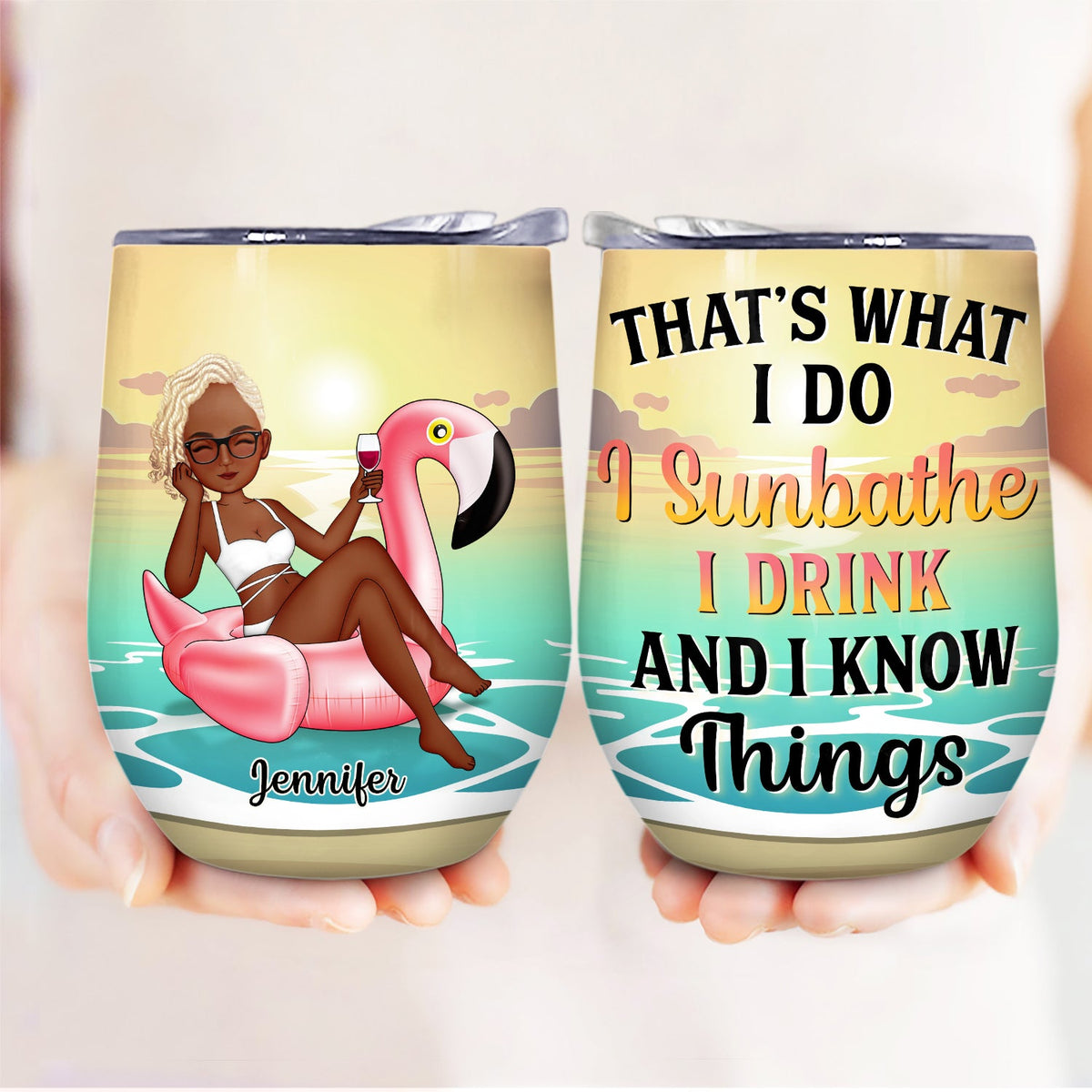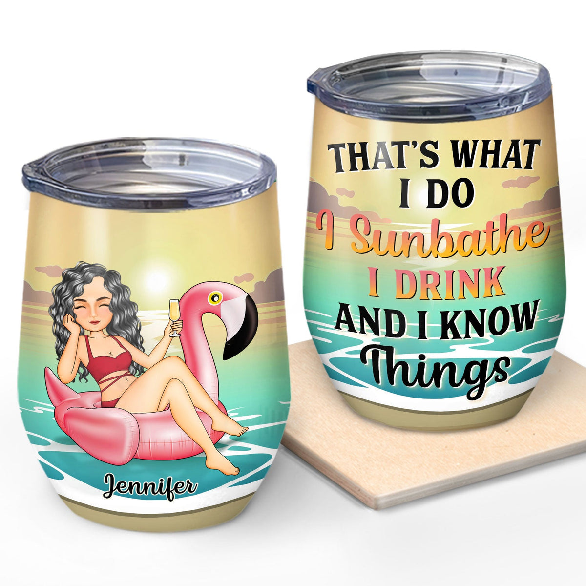 Beach Flamingo I Sunbathe I Drink & I Know Things - Gift For Yourself, Beach Lovers - Personalized Custom Wine Tumbler
