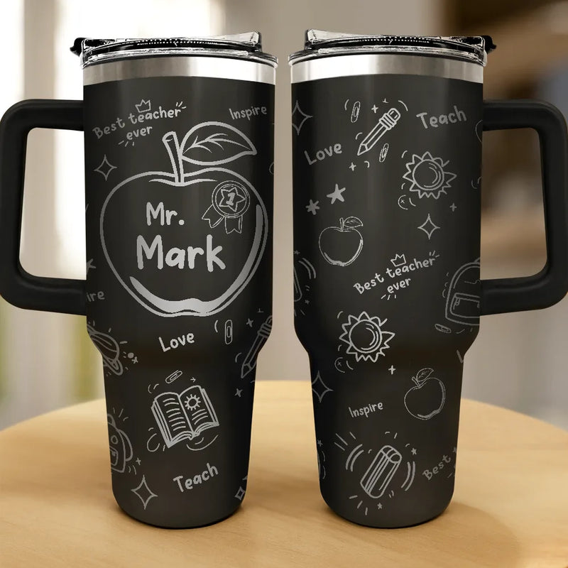 Celebrate educators with the Best Teacher Ever Award Doodle - Personalized Engraved 40oz Tumbler that makes an awesome gift for teachers on Back to School, Teacher Appreciation Day, Birthday, Graduation, Christmas, Thanksgiving, or End-of-Year Celebrations. It evokes joy, gratitude, and appreciation, making your favorite teacher feel truly recognized and valued.