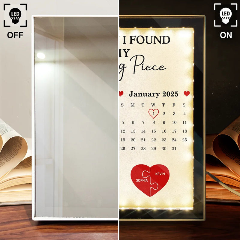 The "Calendar The Day I Found My Missing Piece - Personalized LED Mirror Frame Lamp" is a stunning and heartfelt gift that celebrates the special bond between couples. This beautiful piece of art serves as both a functional lamp and a sentimental reminder of the day you found your other half. Perfect for Valentine’s Day, anniversaries, weddings, Thanksgiving, birthdays, or just a romantic gesture, this personalized LED mirror frame adds warmth and charm to any home.
