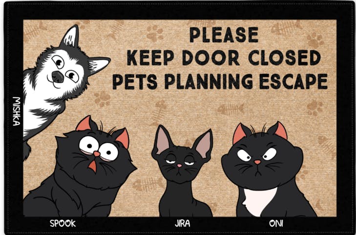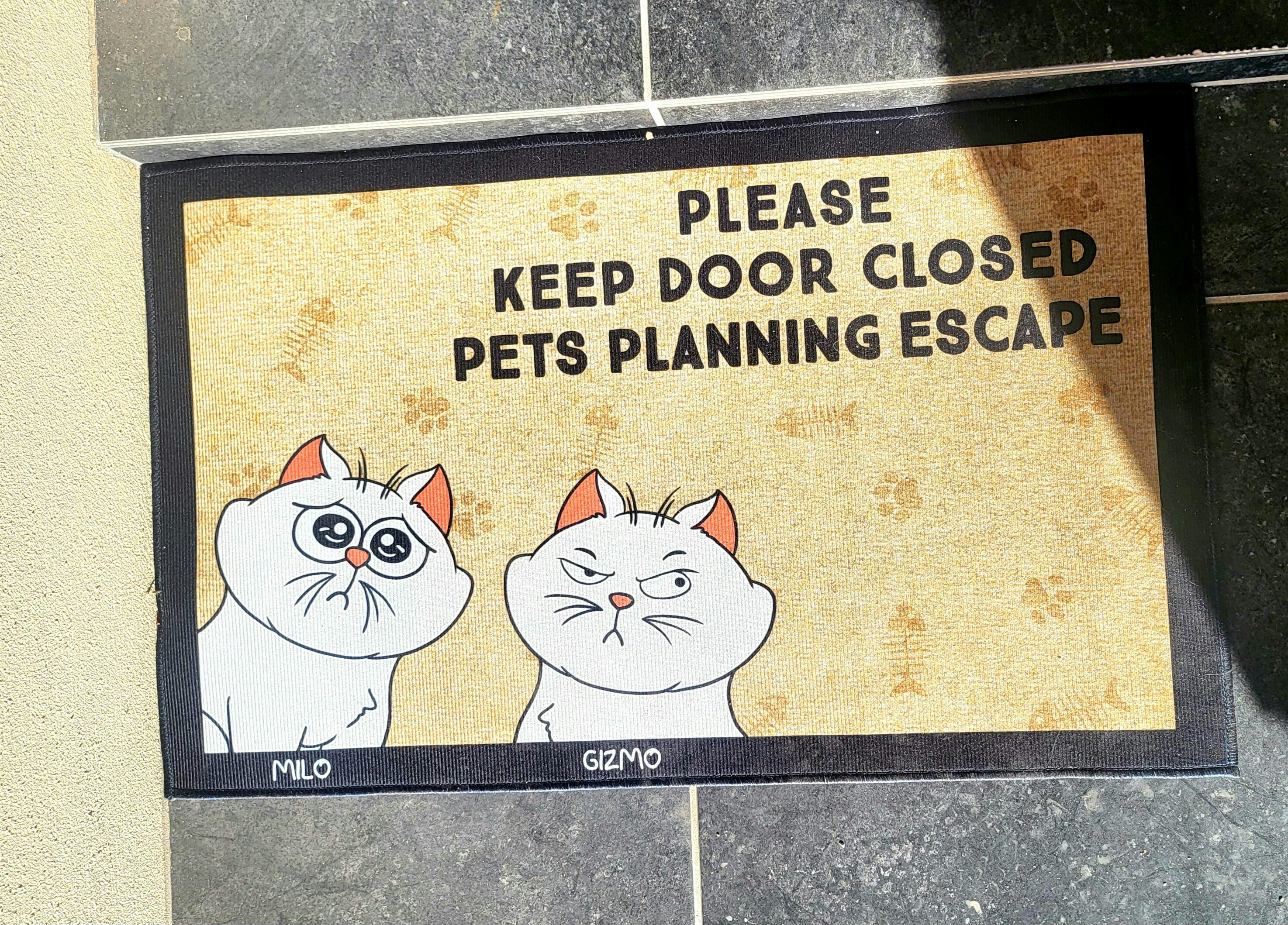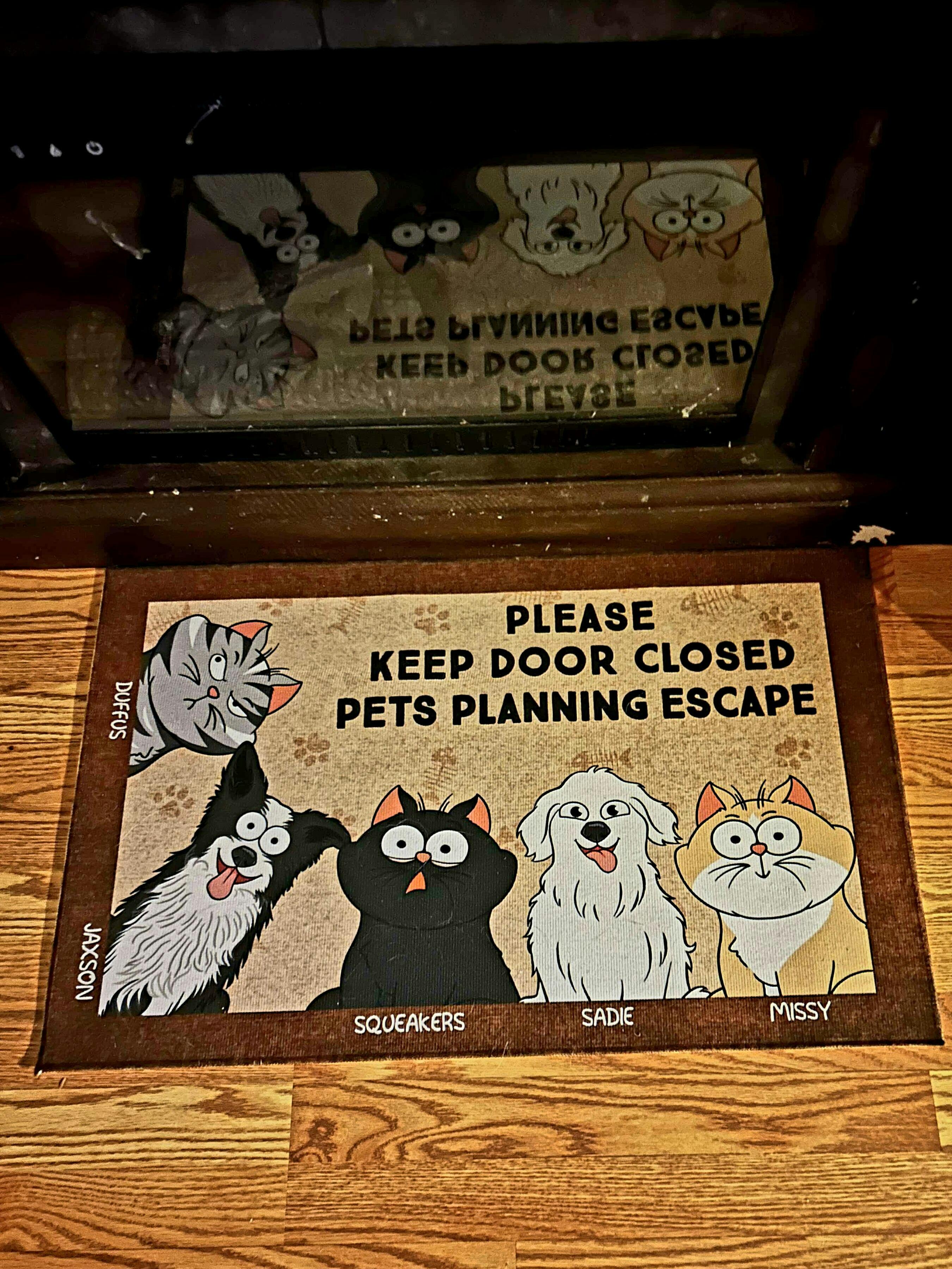 Cartoon Pets Planning Escape - Gift For Pet Lovers - Personalized Doormat