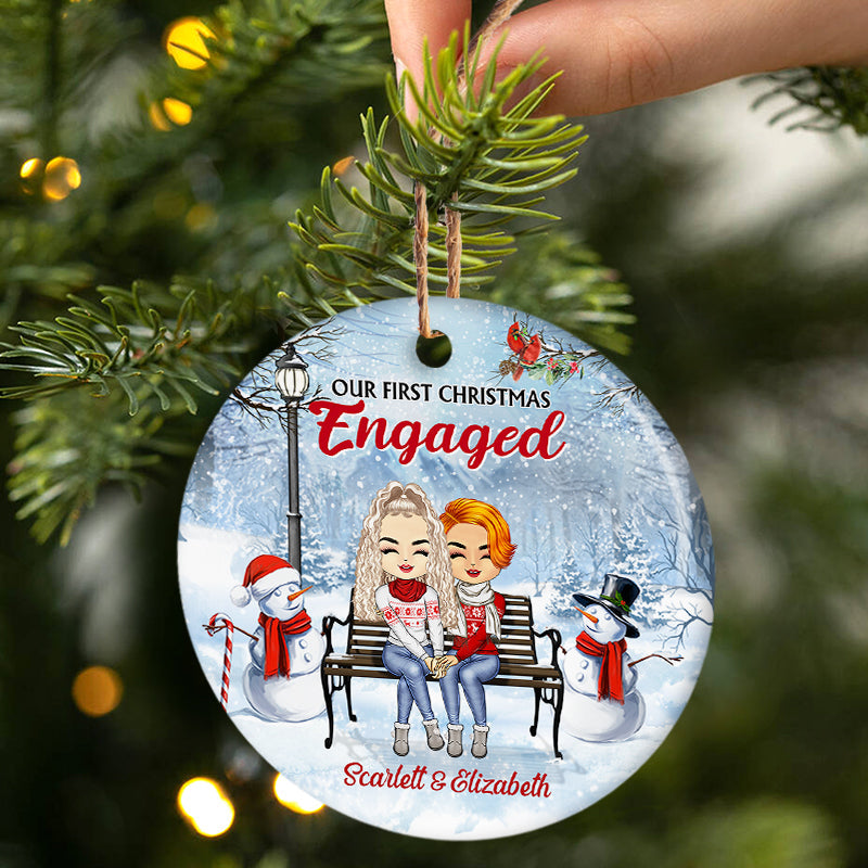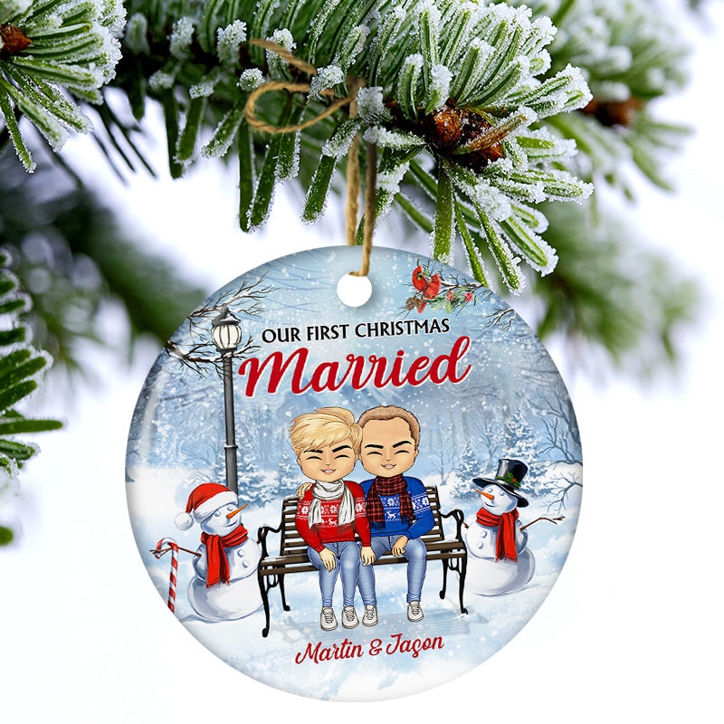 Christmas Family Chibi Couple Our First Christmas Together - Gift For Couples - Personalized Custom Circle Ceramic Ornament